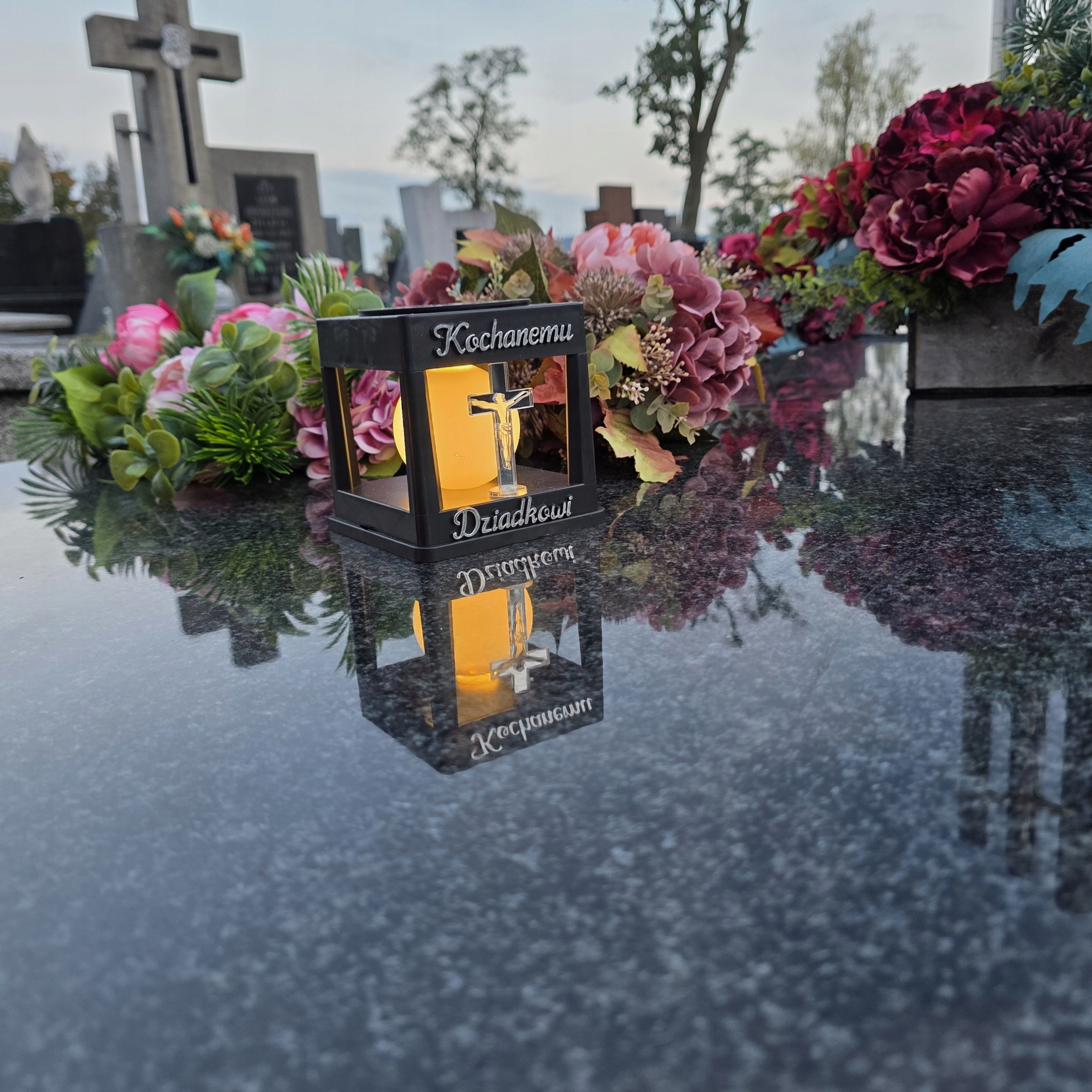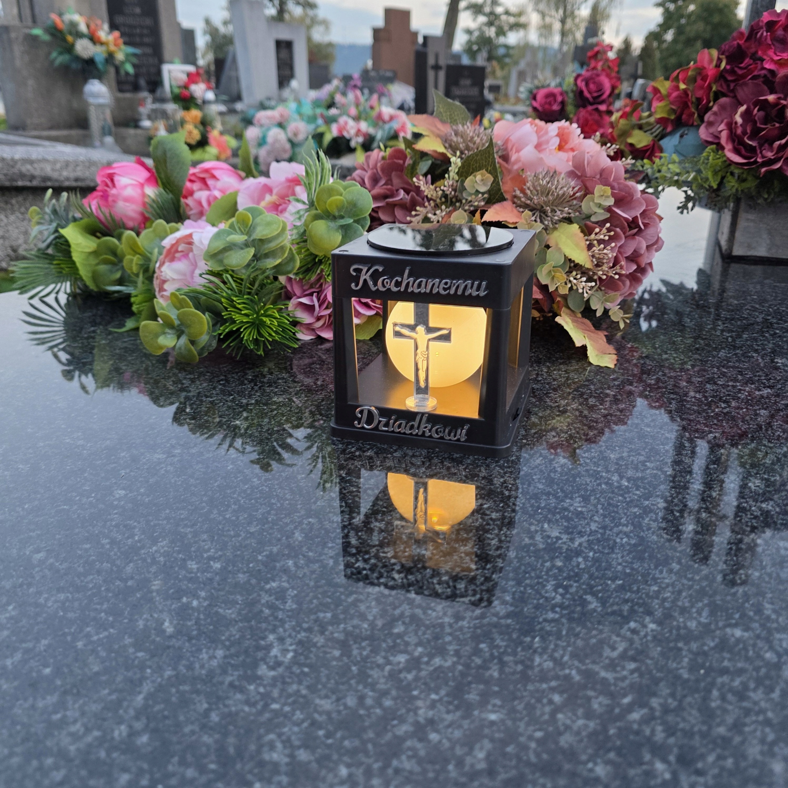 СОЛНЕЧНАЯ СВЕЧА, ФОНАРЬ НА МОГИЛУ, СТАТУЭТКА НА КЛАДБИЩЕ С ДЕДУШИМ КРЕСТОМ