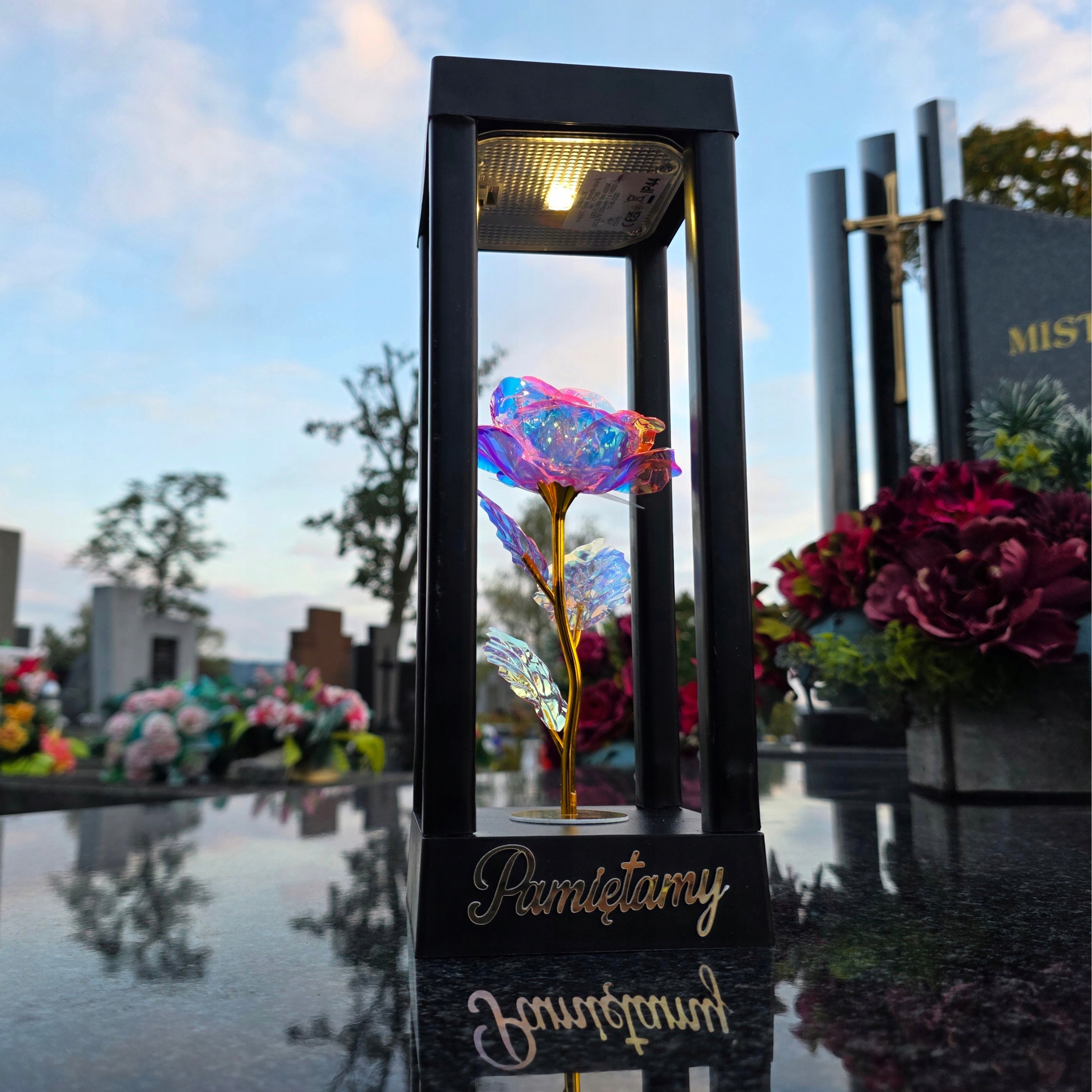 Эта свеча – не просто украшение – это символ памяти, благодарности и любви, который после наступления темноты светится буйством красок, словно свет надежды. Каждый вечер он напоминает нам о близких людях, которых мы носим в своих сердцах, освещая их воспоминания нежным, волшебным сиянием. Это уникальный способ сказать: «Мы помним» — с классом, спокойствием и красотой, которая не угасает.