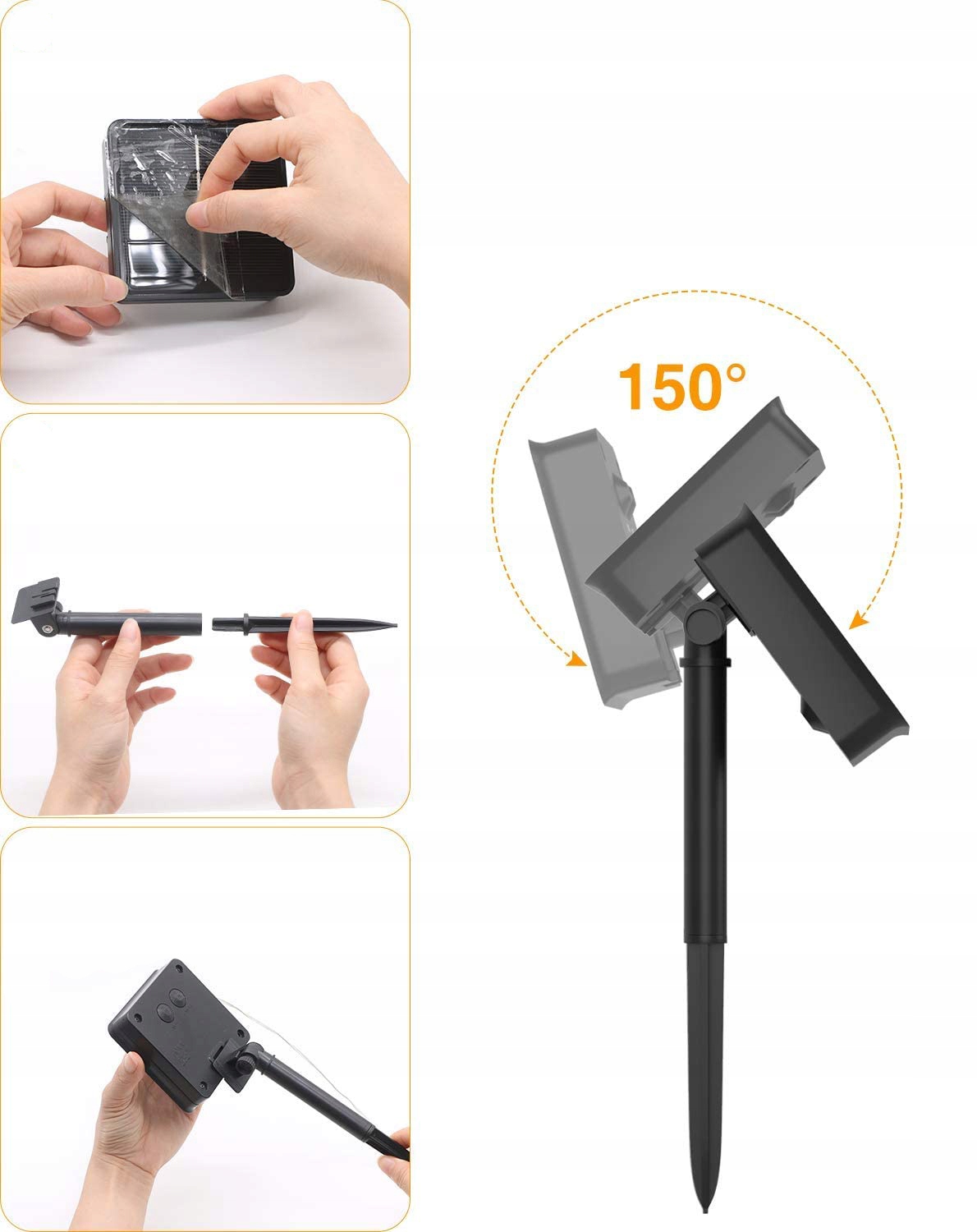 3 . и 4. ✅ Светильник комплектуется элементами, позволяющими легко закрепить панель в земле. Отсутствие необходимости использовать электрические кабели делает установку быстрой и простой. Убедитесь, что панель воткнута в землю в месте, куда попадают солнечные лучи.