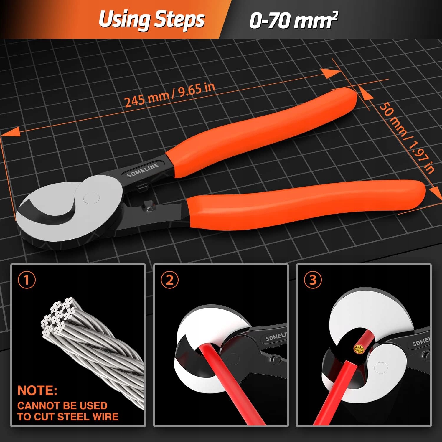 Someline Clampic Tool 6-50 мм² для кабельных наконечников и разъемов. Форма использует технологию резания проволоки, благодаря которой зажим более точным и сильным. Инструменты зажима направлены на более быструю работу, точную и проще. Эргономическая ручка обеспечивает надлежащее удержание, а дескриптор длиной 25 см оснащен структурой рычага, поэтому вы можете сэкономить 30% сил