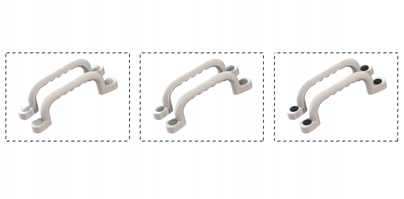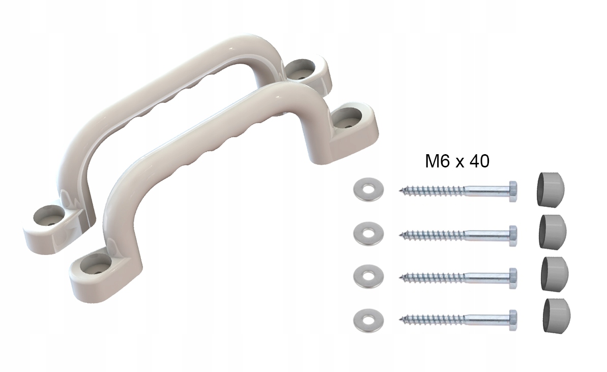 - 2 НАБОРА РУЧОК 240 мм БЕЛОГО цвета с СЕРЫМИ колпачками и комплект из 4 винтов и шайб, которые видны на фотографиях.