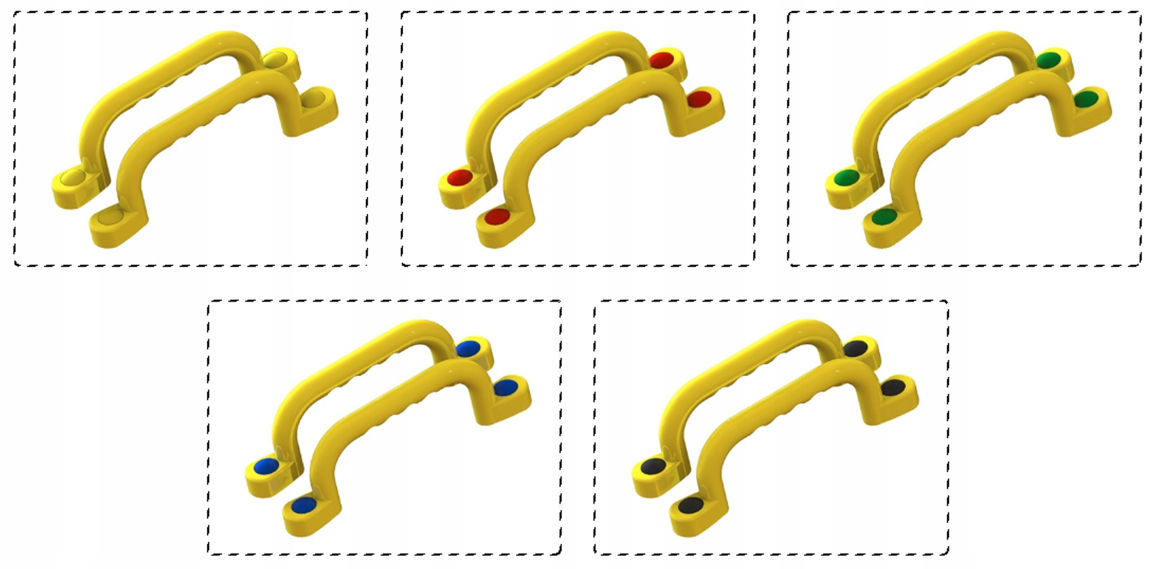 - 2 комплекта 240 мм ручки в желтом цвете с желтыми крышками и набором из 4 винтов и прокладки, видимых на изображениях