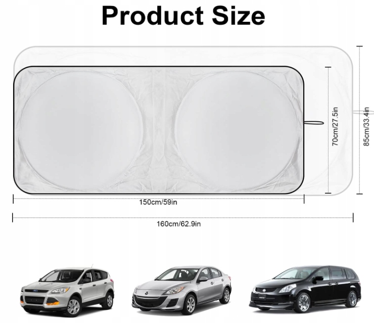 - Универсальная защита от солнца от ветрового стекла: размер нашего солнцезащитного крема на ветровом стекле составляет 160 х 85 см, подходит для большинства автомобилей, размер измеряется вручную, пожалуйста, измерьте размер ветрового стекла автомобиля перед покупкой, найдите лучший хороший размер.
