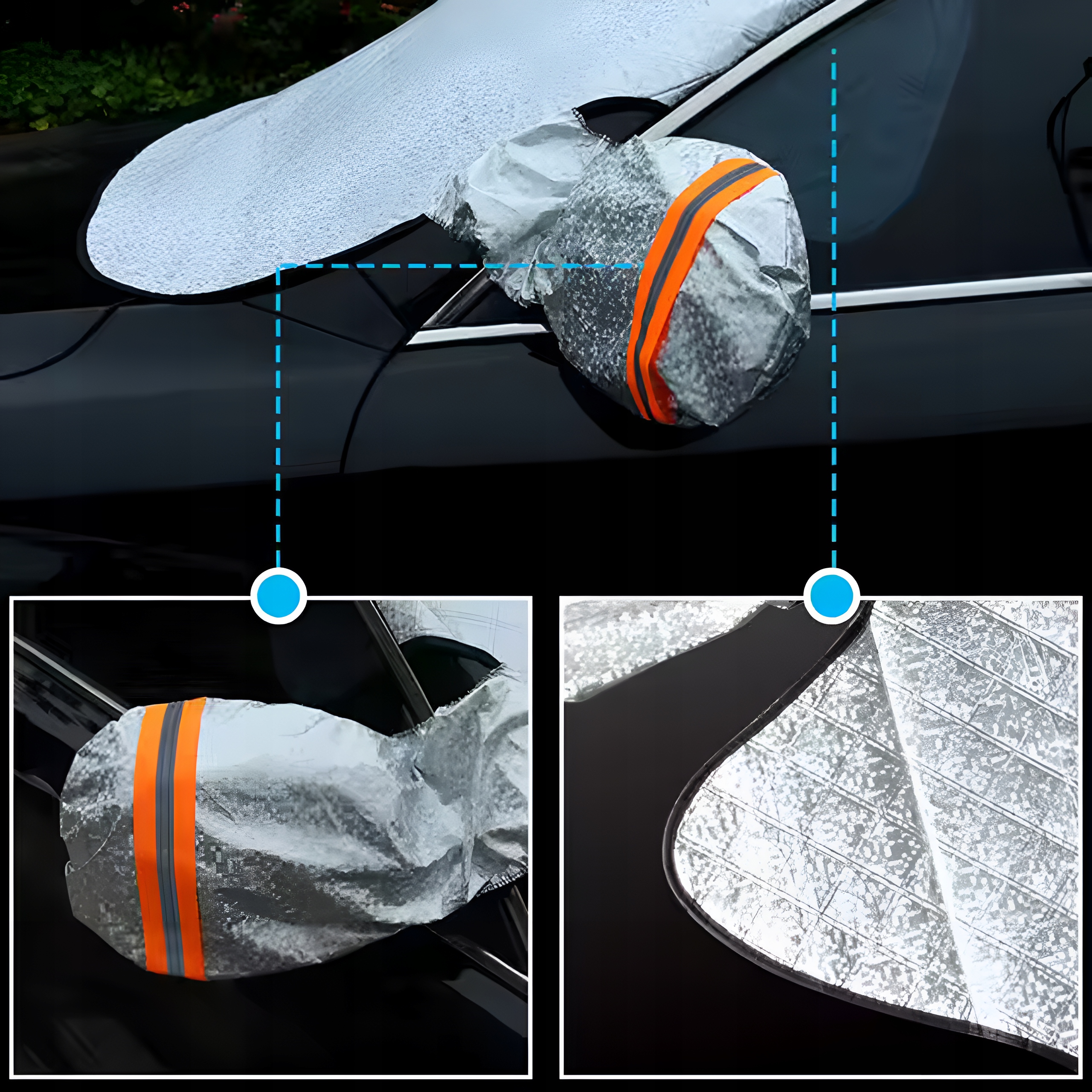 Солнечный козырьк для лобового стекла. Дополнительные чехлы для боковых зеркал повышают защиту и облегчают установку . Продукт легко собирать и хранить, что делает его практическим решением для каждого сезона года