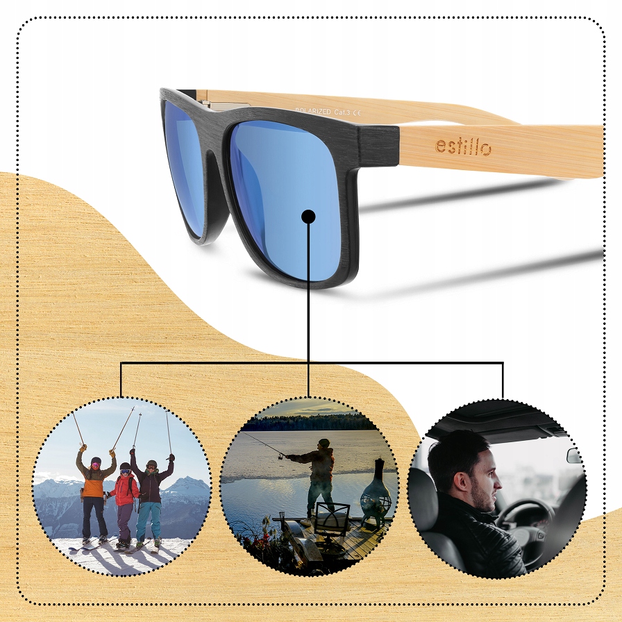 линзы и деревянная оправа включены