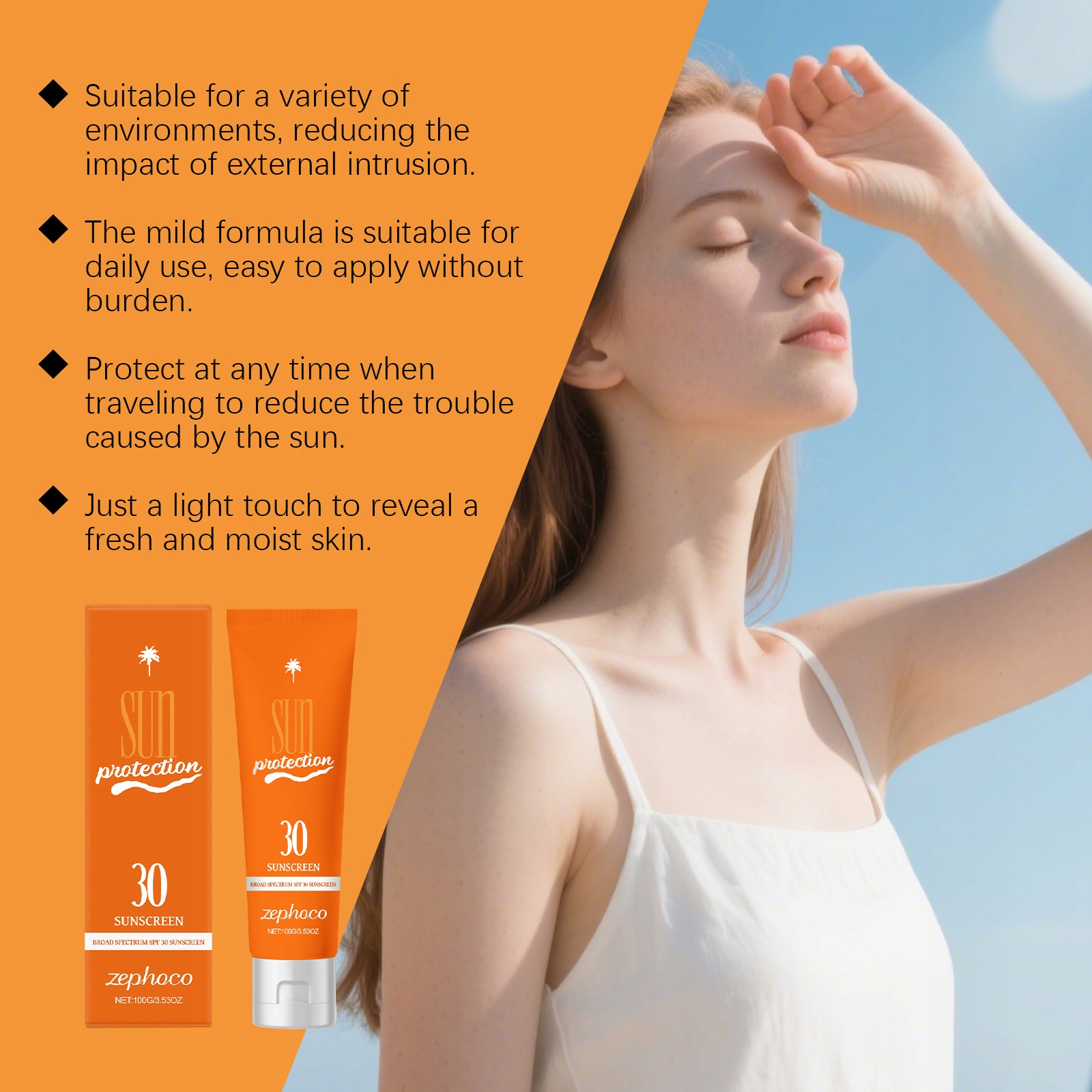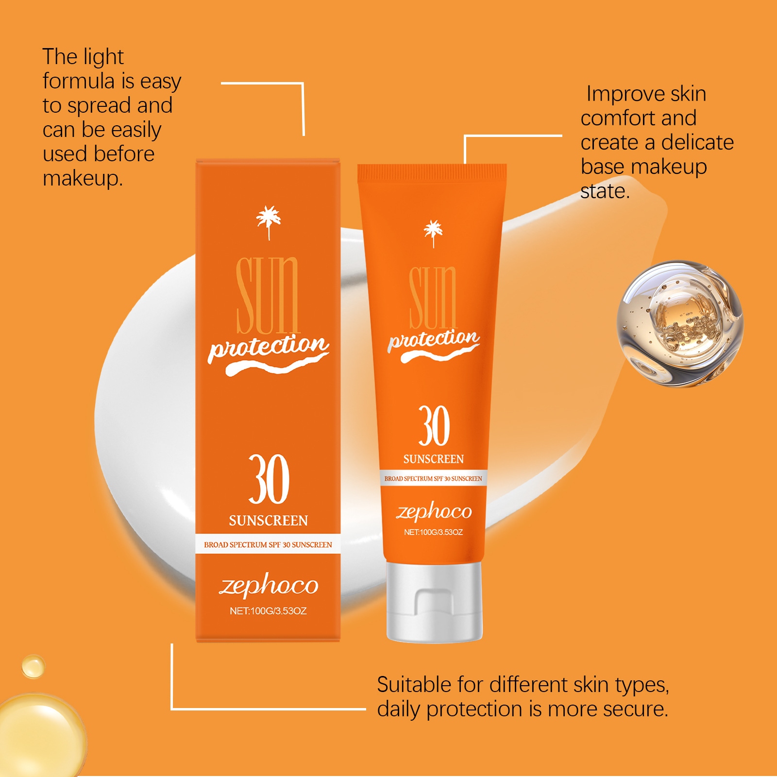 Технология дышащей мембраны: Солнцезащитные ингредиенты заключены в легкий вес в дышащей мембране, не вызывая эффекта прыщей.