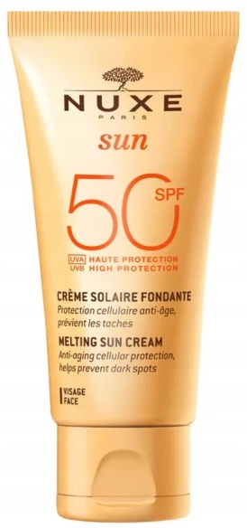 NUXE Sun SPF 50 Восхитительный солнцезащитный крем для лица содержит более 79% натуральных ингредиентов и имеет цветочно-фруктовый аромат. Обеспечивает высокую защиту кожи от солнца и предотвращает старение кожи. Предотвращает изменение цвета, сохраняет загар и ухаживает за тонкой кожей лица. Не отбеливает и не закупоривает поры.