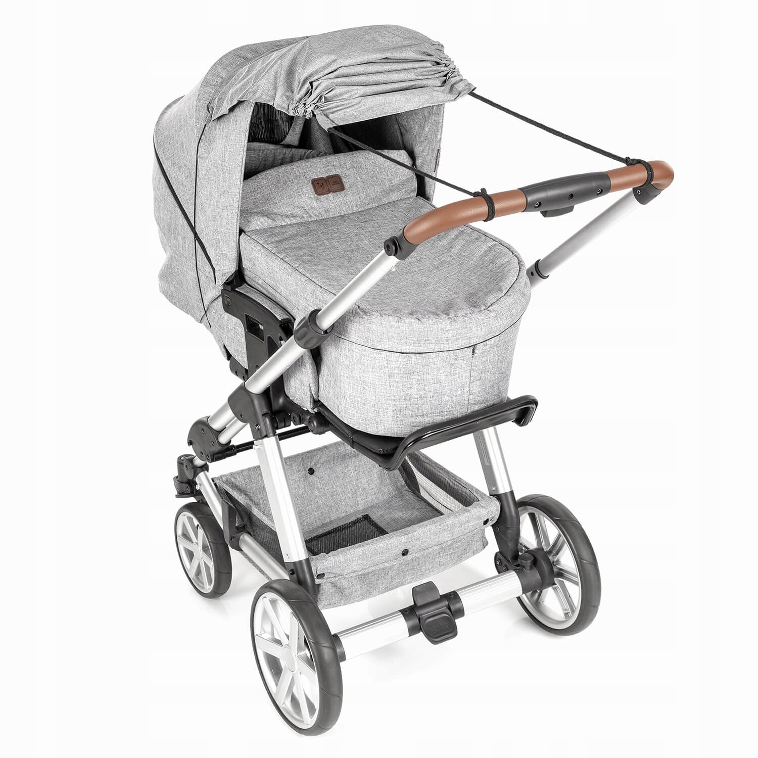 - Простая сборка - оберните коляску резинкой и привяжите 2 веревочки на концах капюшона к ручке коляски.