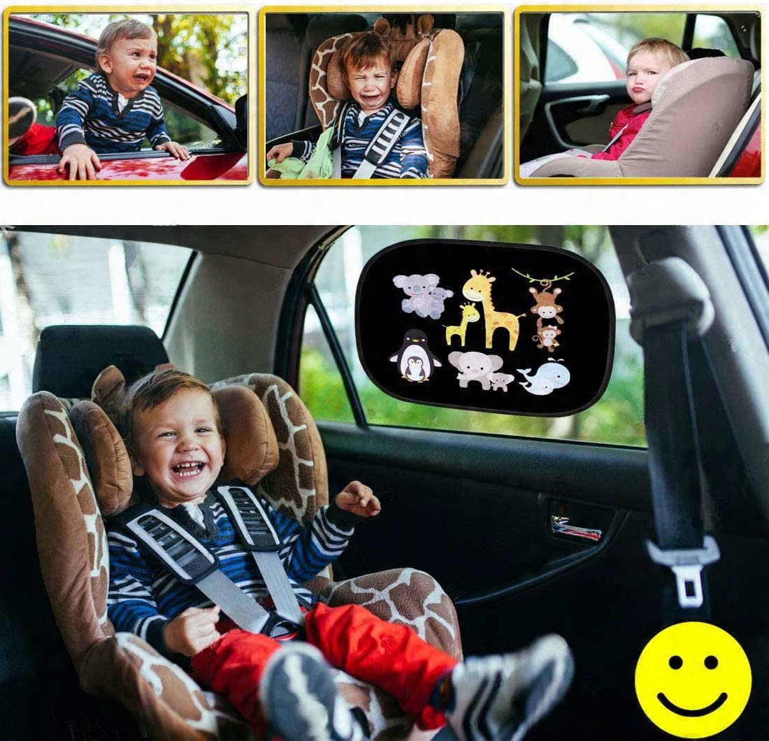 - ☀️Мотивы животных из мультфильмов - Этот солнцезащитный автомобиль для детей с мультяшным рисунком, разработанным специально для детей, с технологией цифровой печати. , как для мальчиков, так и для девочек, сделает ваше путешествие более интересным.