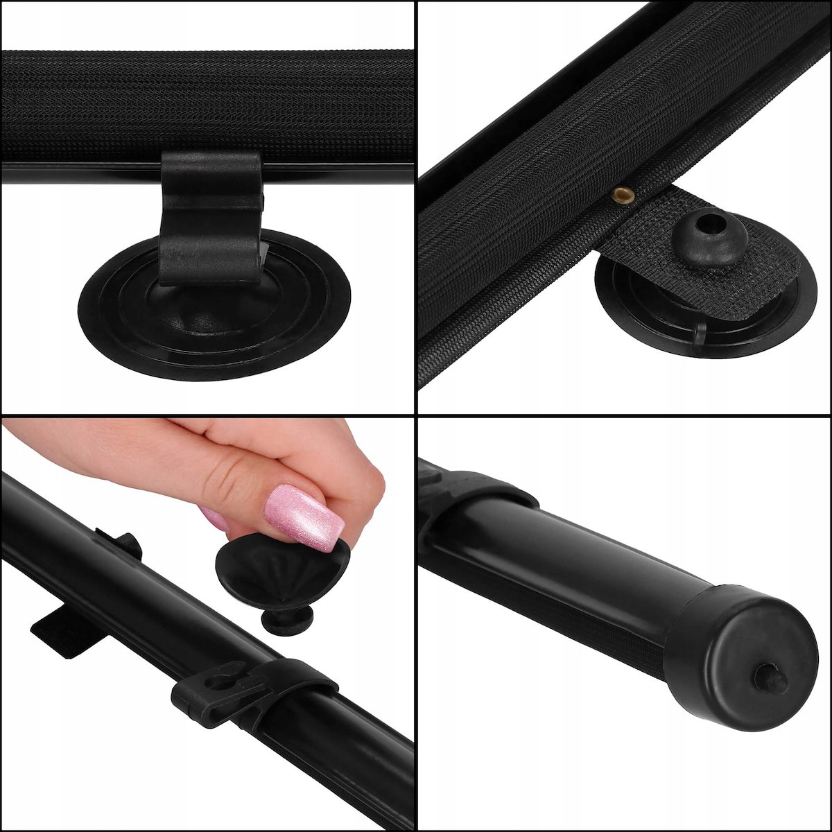 Автомобильные шторы изготовлены из прочной и прочной полиэфирной сетки, что обеспечивает долгий срок службы изделия. За правильную посадку отвечают ремни-липучки с двусторонней лентой. Благодаря универсальным размерам шторы подходят к большинству окон автомобиля.
