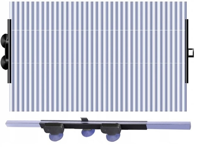 - Просто прикрепите его присосками с одной стороны, разверните на нужную длину и прикрепите вторую пару присосок. на другом конце лобового стекла.