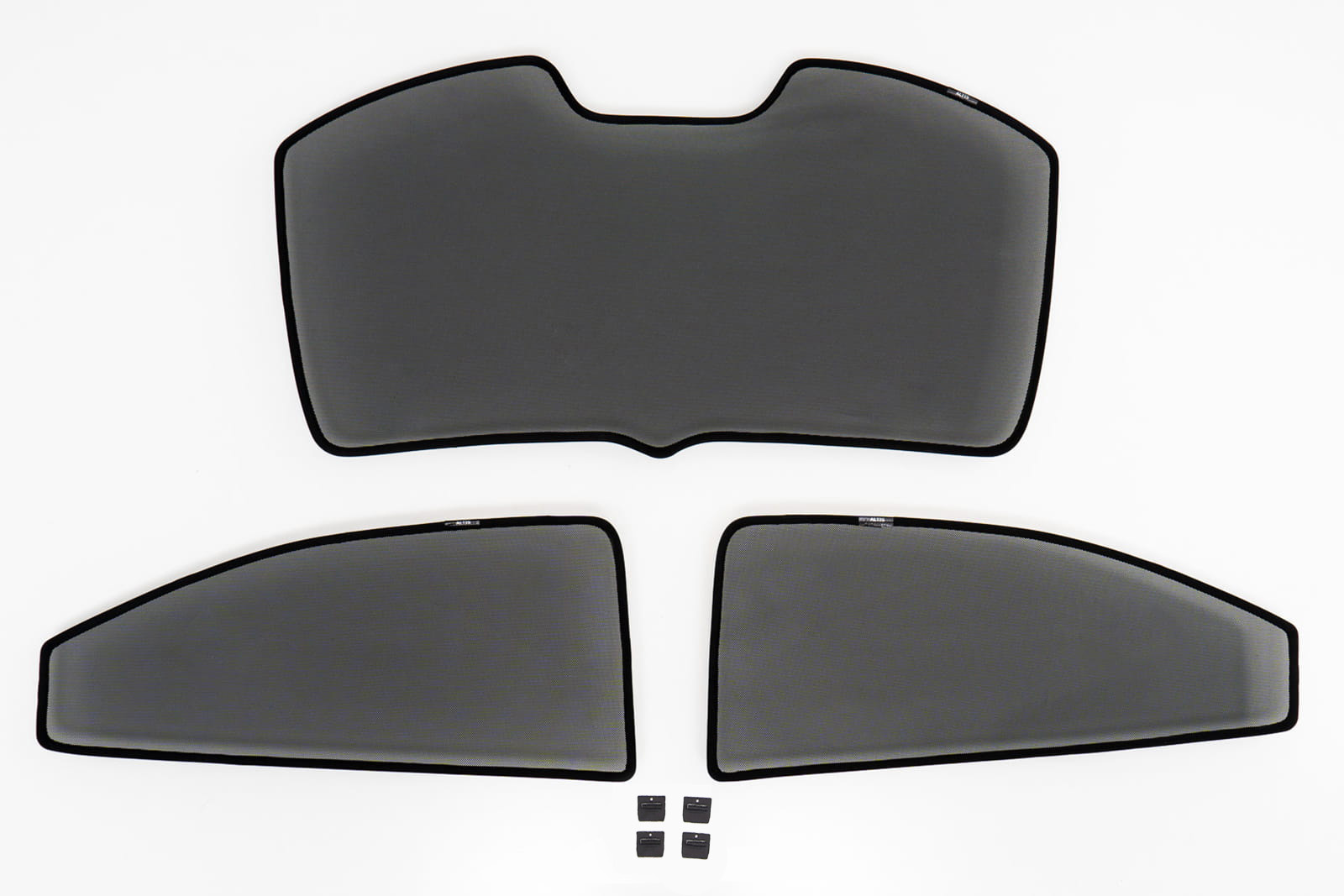 - Комплект из 3-х штук магнитных штор (две на задние боковые стекла и одна на стекло багажника) + дополнительные элементы крепления.