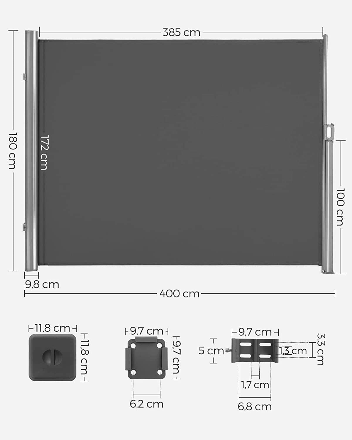 Солнцезащитное солнце в темно -сером цвете с регулируемой длиной до 4 метров.