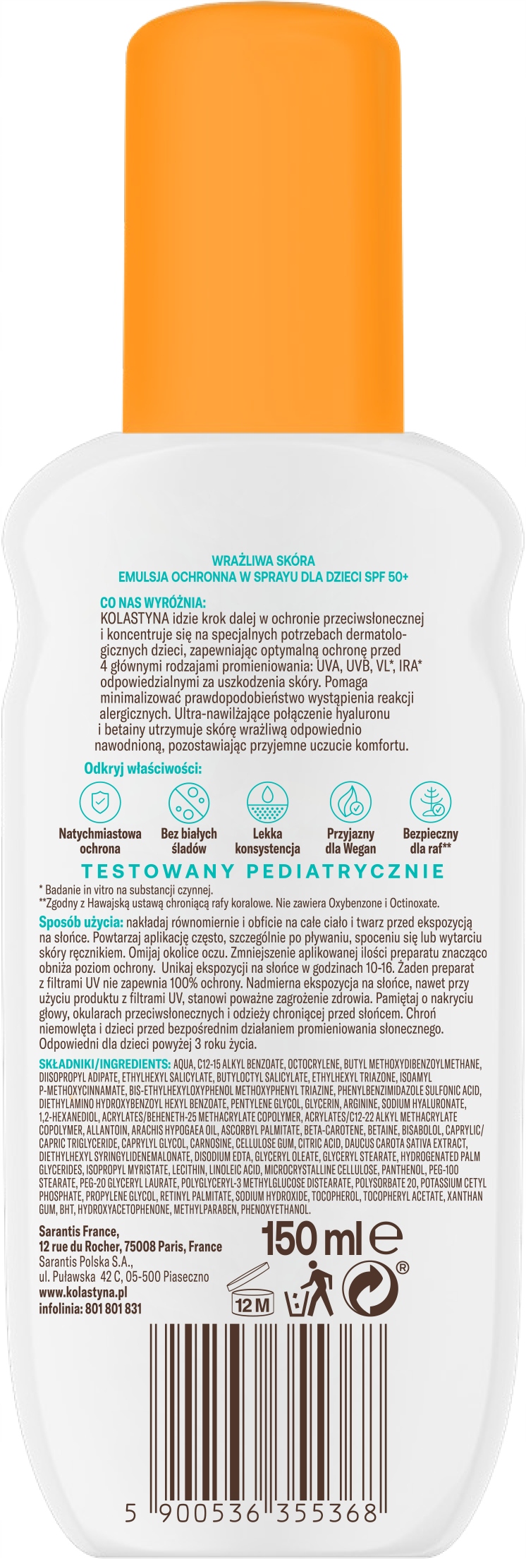 KOLASTYNA SENSITIVE SKIN Защитная эмульсия-спрей для детей SPF 50+, 150 мл