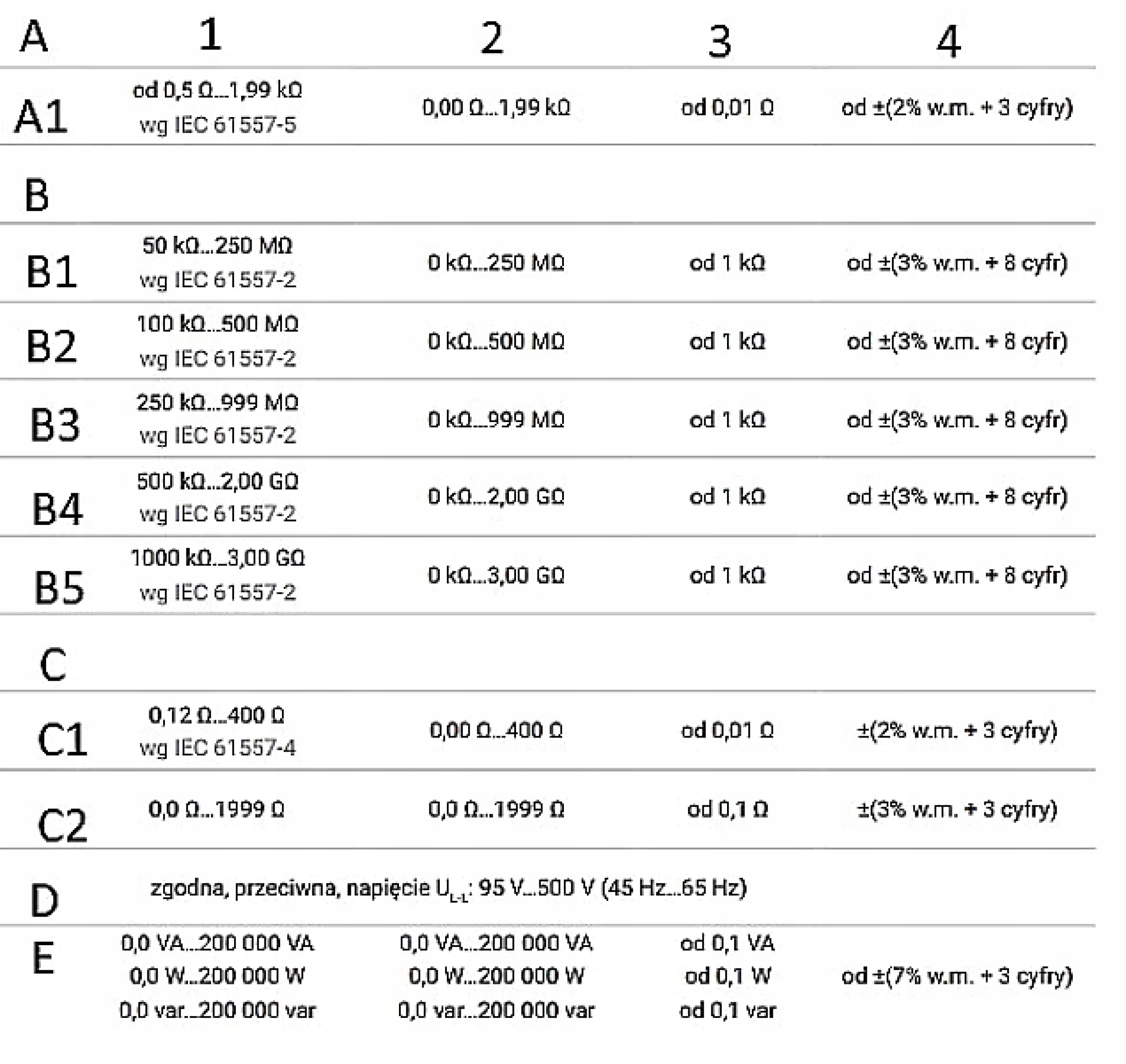 Кажущаяся мощность: 0,0 ВА ... 200 000 ВА, разрешение от 0,1 ВА, точность от (7% w.m. + 3 цифр). ;