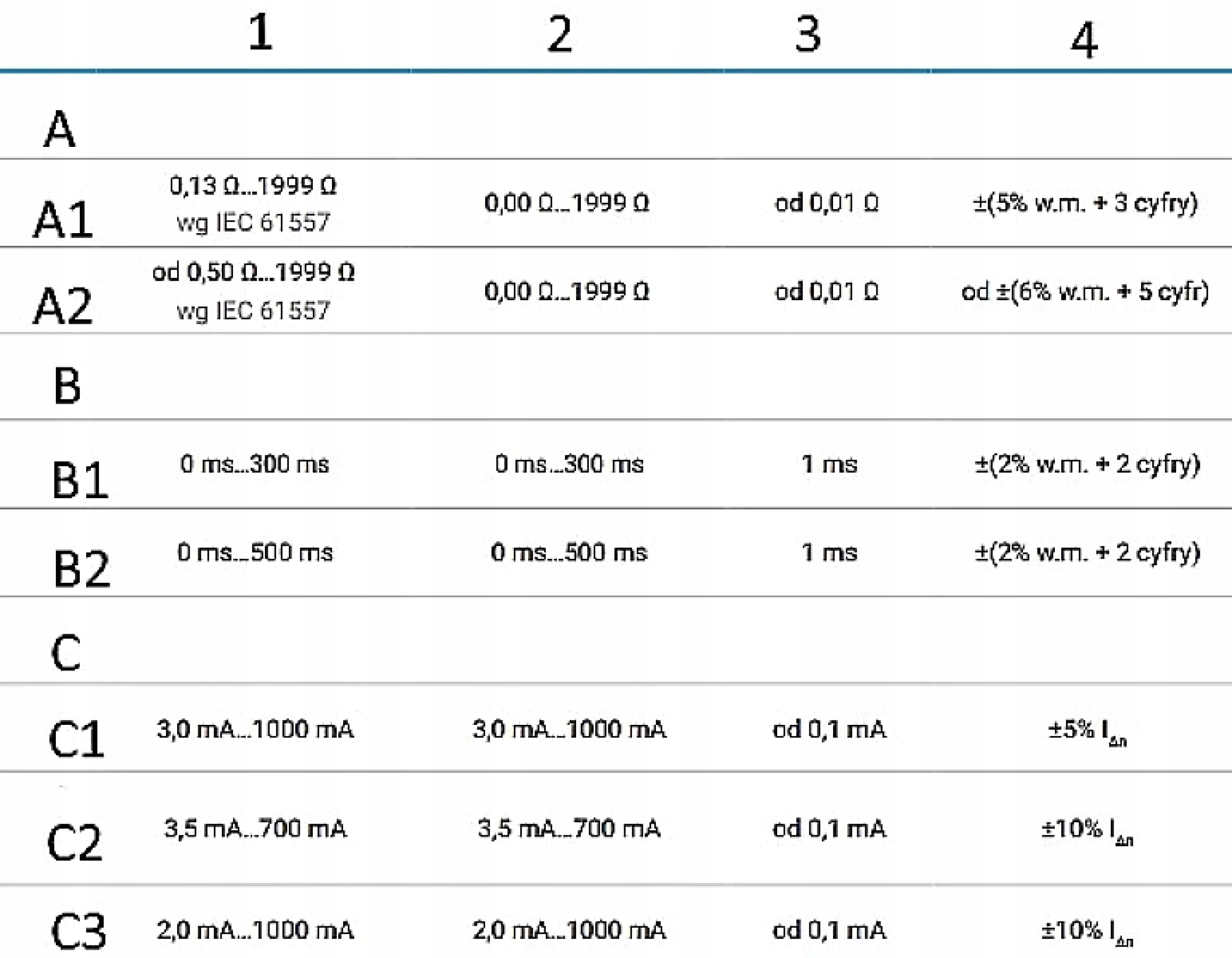3-проводной метод: от 0,5 ... 1,99 К (согласно IEC 61557-5), диапазон отображения 0,00 ... 1,99 К, разрешение от 0,01, точность от (2% w.m. + 3 цифр). ;