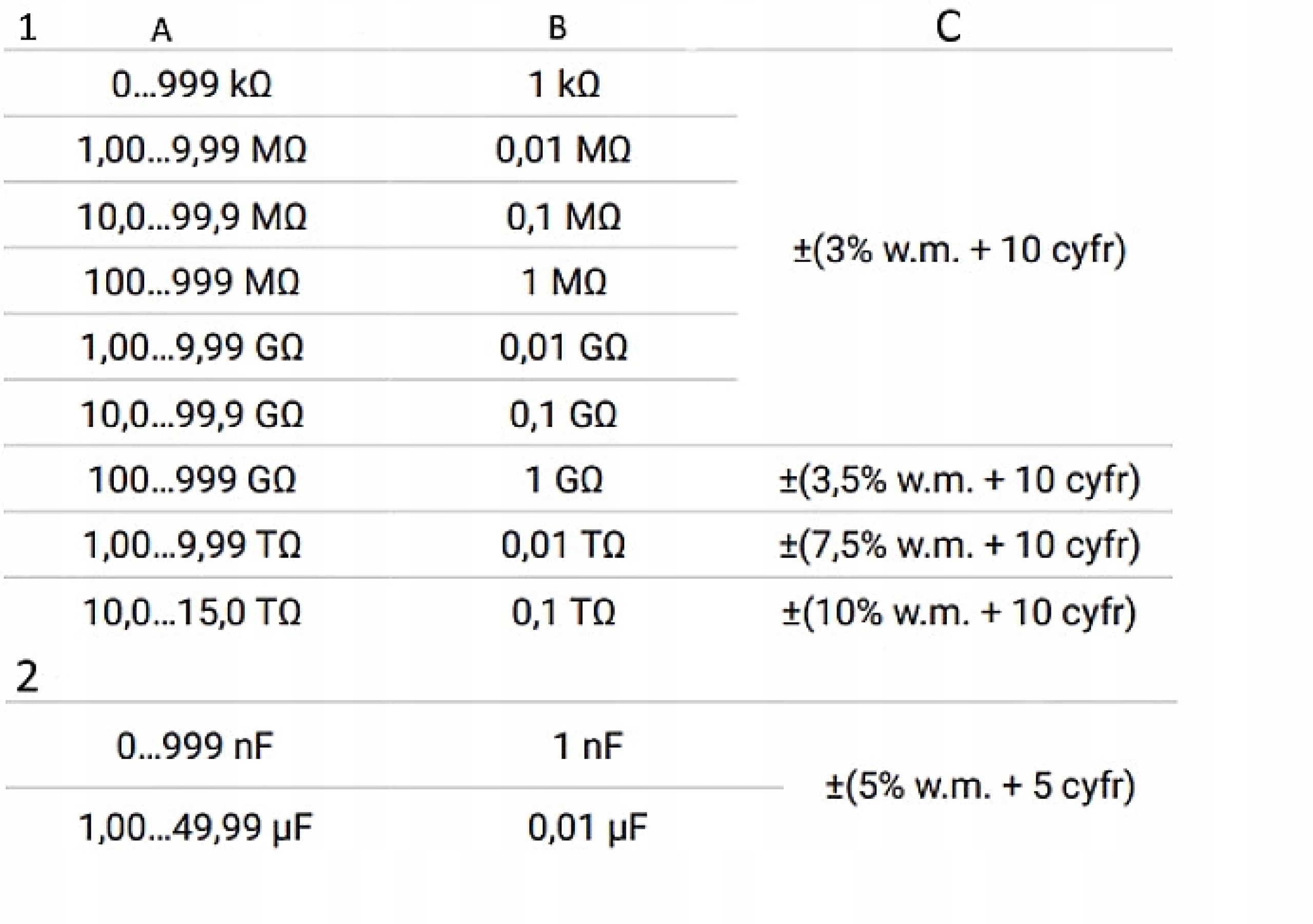 1. Измерение сопротивления изоляции . Диапазон измерений в соответствии с IEC 61557-2 Risomin = uzonom/iisomax = 50 кОм ... 15,0 Tω (iisomax = 1,2 мА или 3 мА)