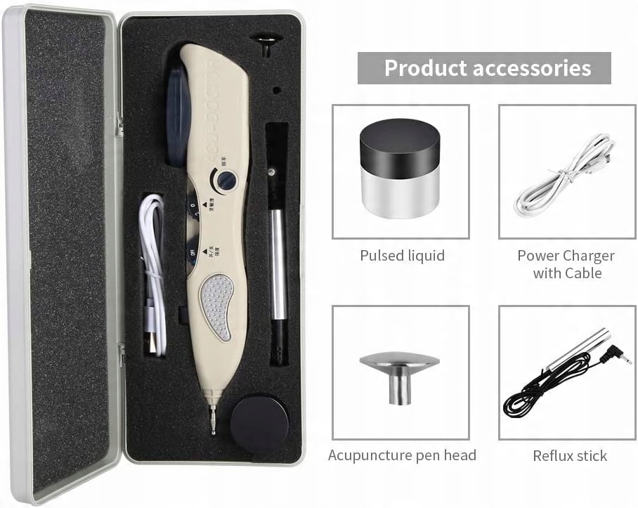 ЛЕГКОСТЬ В ИСПОЛЬЗОВАНИИ Эта легкая и простая в использовании безыгольная ручка для акупунктуры предназначен для легкого и домашнего лечения без прокалывания кожи. Его можно использовать при многих заболеваниях. Обнаруживает акупунктурные точки и звуки. Можно безопасно использовать дома, не прокалывая кожу.