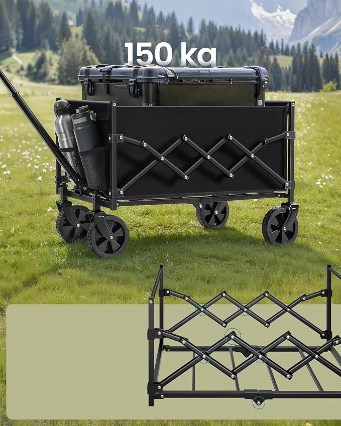 SONGMICS Садовая тележка Складная походная тележка Компактный черный