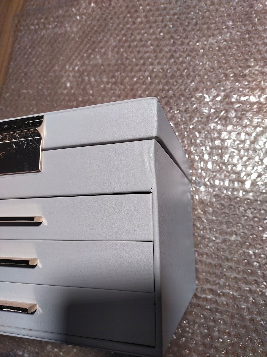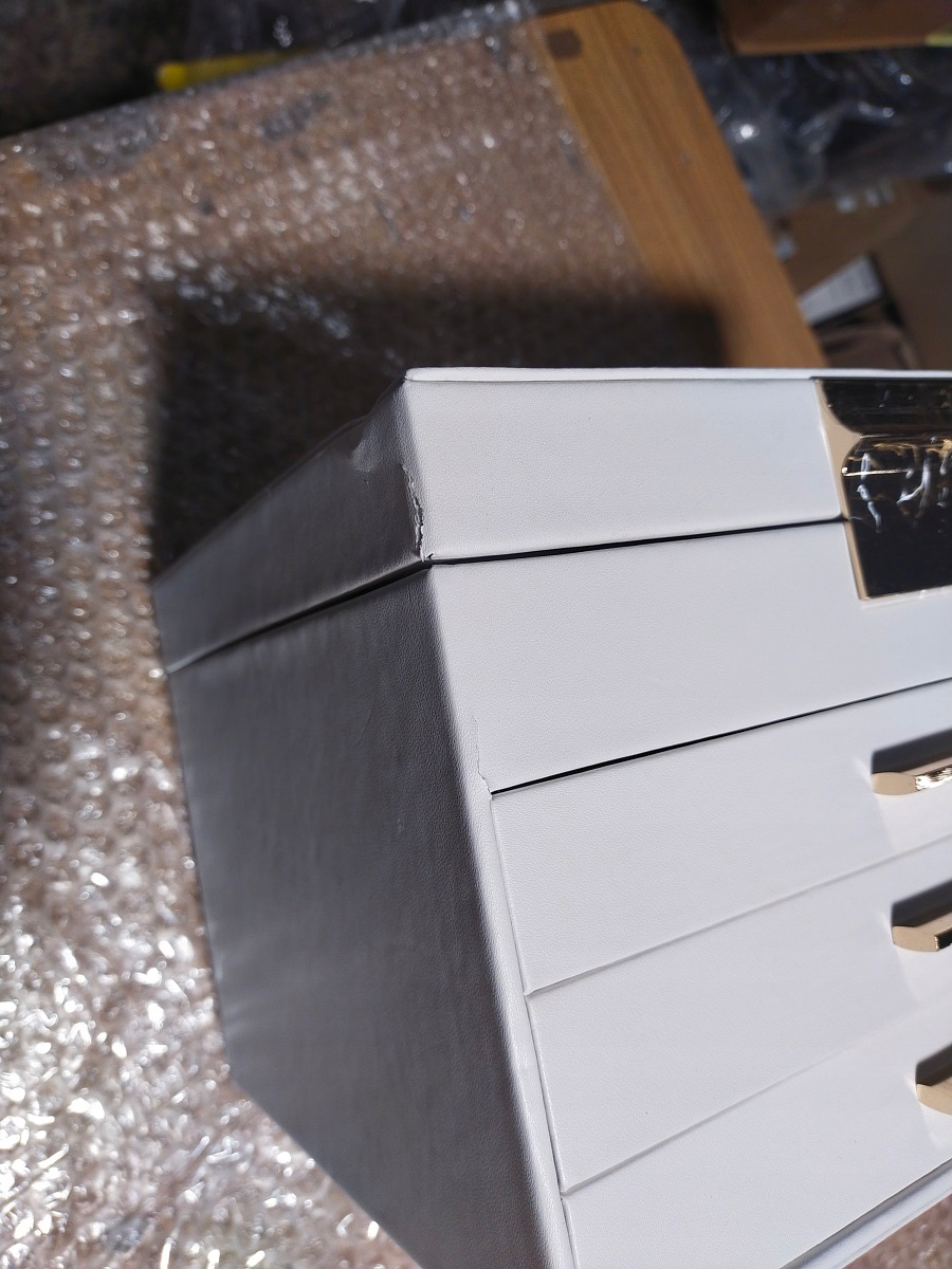 - [Шик и прочный] Мягкий облачно-белый, блестящие металлические ручки золотого цвета, мягкая бархатная подкладка, тщательно обработанные швы, качественное полиуретановое покрытие. , панели из массива МДФ — эти элементы вместе образуют элегантную и прочную шкатулку для драгоценностей.