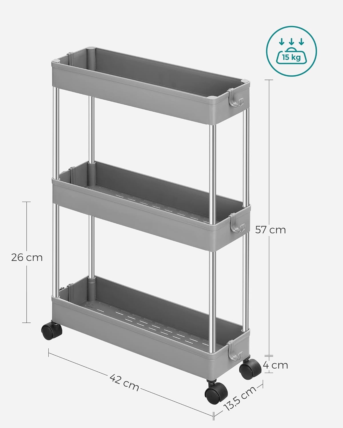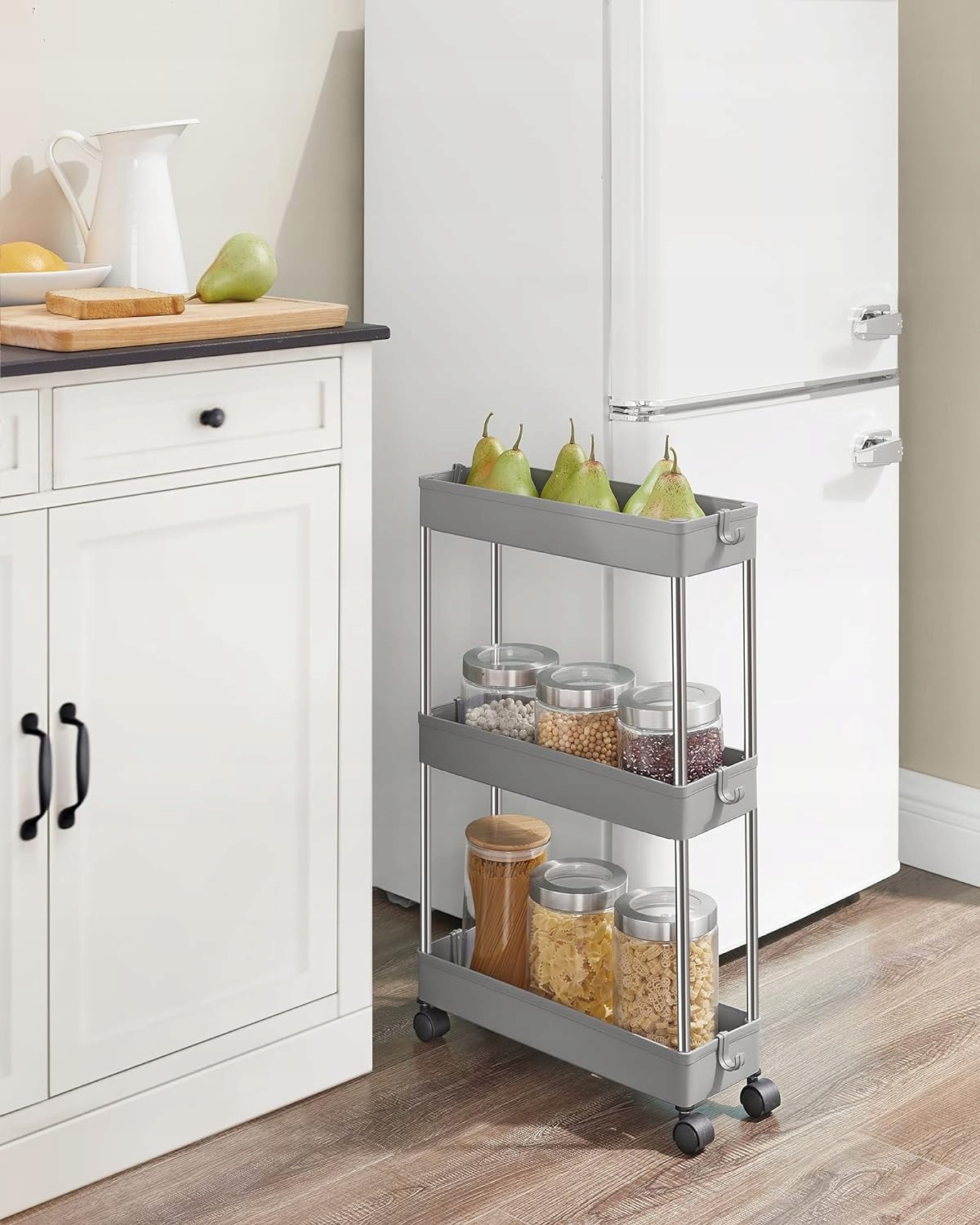 шанс: всегда злитесь на отсутствие места для мелких предметов? Просто поверните эту тележку шириной 13,5 см в углу и создайте дополнительное место для хранения.