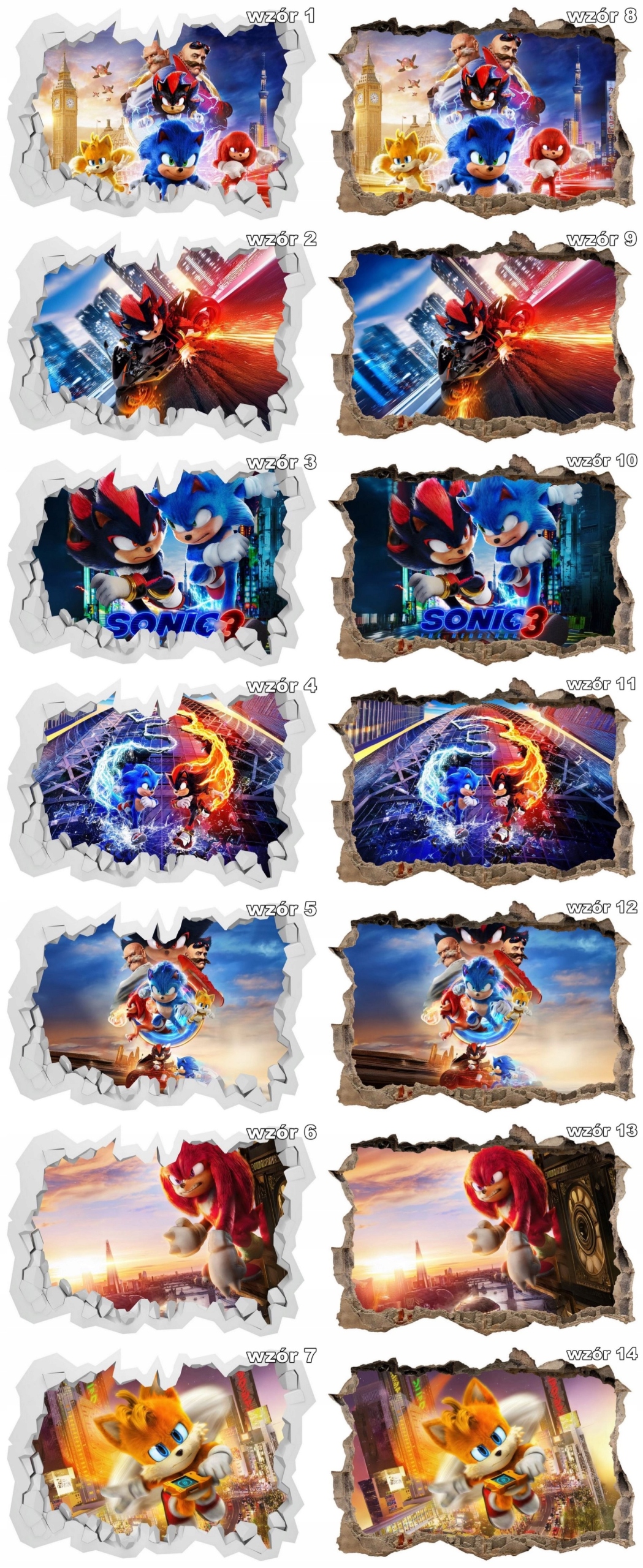 Sonic 3, 3D стена наклейка 100x70