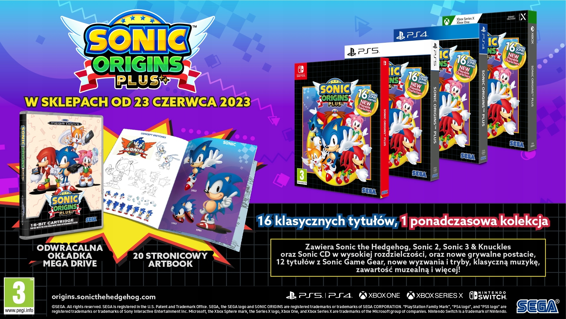 Sonic Origins Plus / Nintendo Switch / Nowa w Folii / Artbook / 16 gier w 1