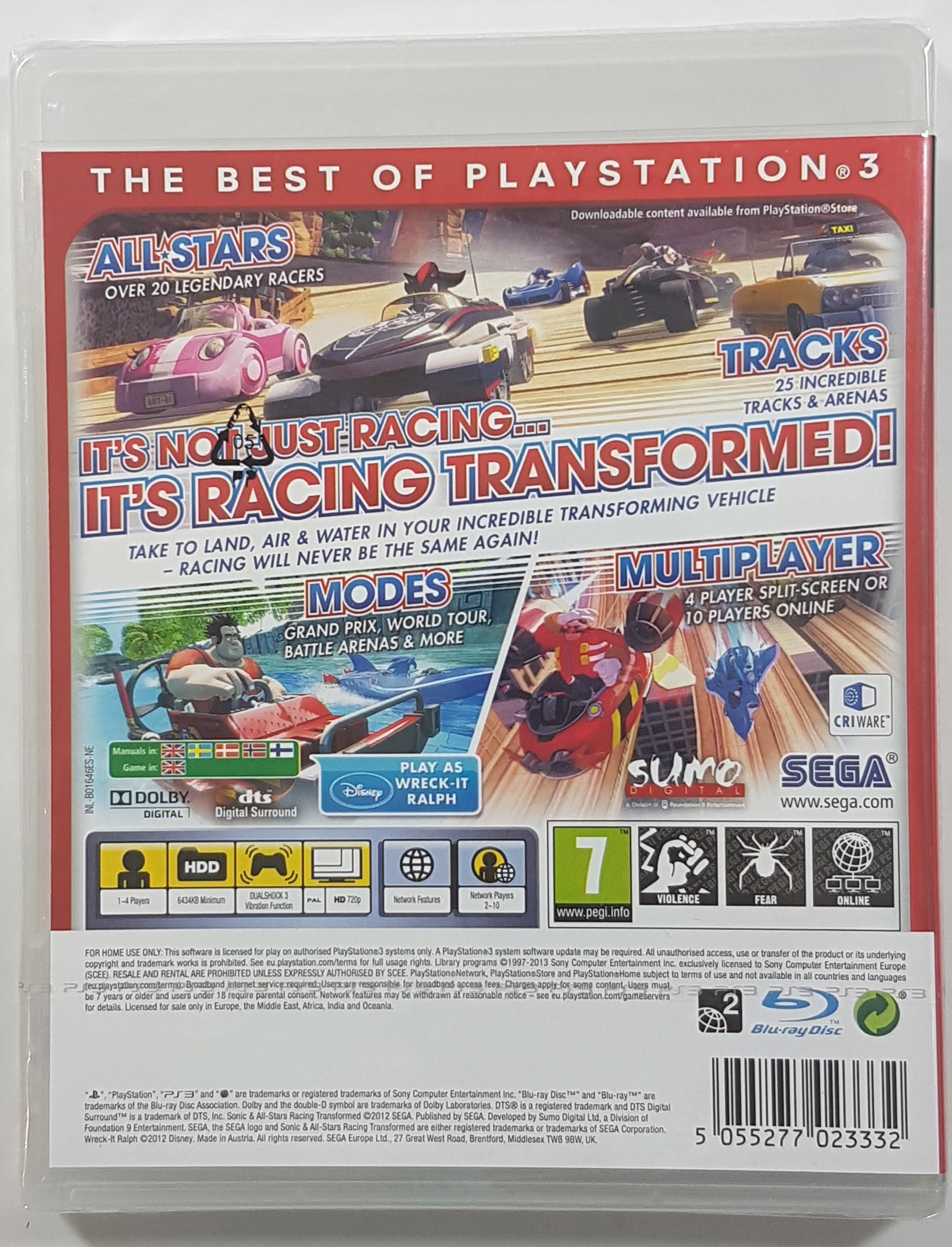 SONIC SEGA ALL-STARS RACING TRANSFORMED PS3 /НОВИНКА/