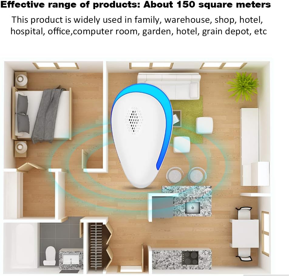 - Широкая зона покрытия】 Ультразвуковое насекомое отпущение подходит для площади 90 ~ 150 квадратных метров. Он широко используется в домах, складах, офисах, садах, отелях и т. Д., Поскольку ультразвуковые исследования не могут попасть в стены и постоянные предметы, рекомендуется разместить одну комнату в одну комнату. В местах, где тяжелые вредители тяжелые, мы рекомендуем установить 2 или более устройств.