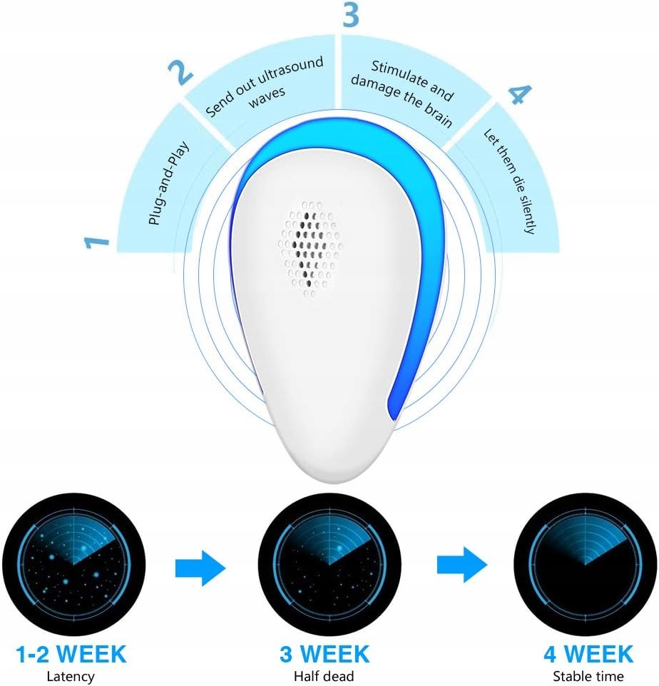 - 【Ультразвуковая технология】 Ультразвуковой червь Репеллер использует двойные ультразвуковые и электромагнитные чипсы одновременно, чтобы запутать систему слуха и нервных вредителей, чтобы быстро и эффективно отпугнуть их. Он может сдерживать большинство видов летающих и ползающих вредителей, таких как комары, пауки, жуки, тараканы, мыши, блохи, муравьи, фруктовые мухи и т. Д.