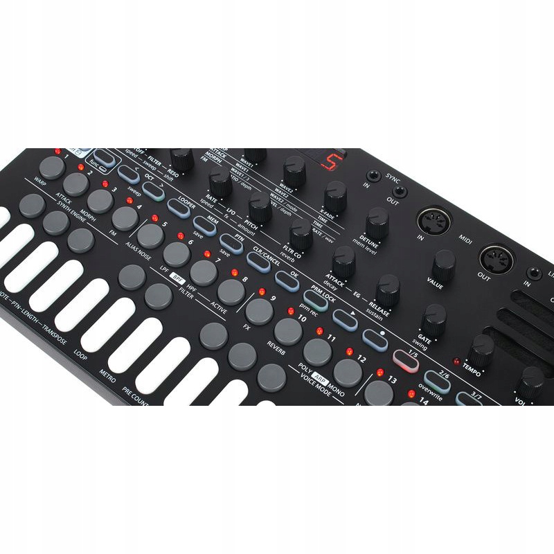 - С пошаговым секвенсором, фильтром, внутренними эффектами и лупером