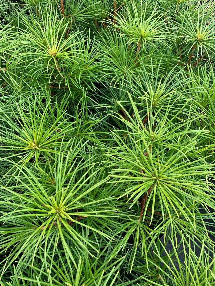 Характеристика Особенностью, отличающей этот вид, является необычная хвоя. Короткие и чешуйчатые покрывают побеги, а на концах побегов вырастают длинные (до 15 см) темно-зеленые хвоинки, образующие зонтиковидные мутовки.