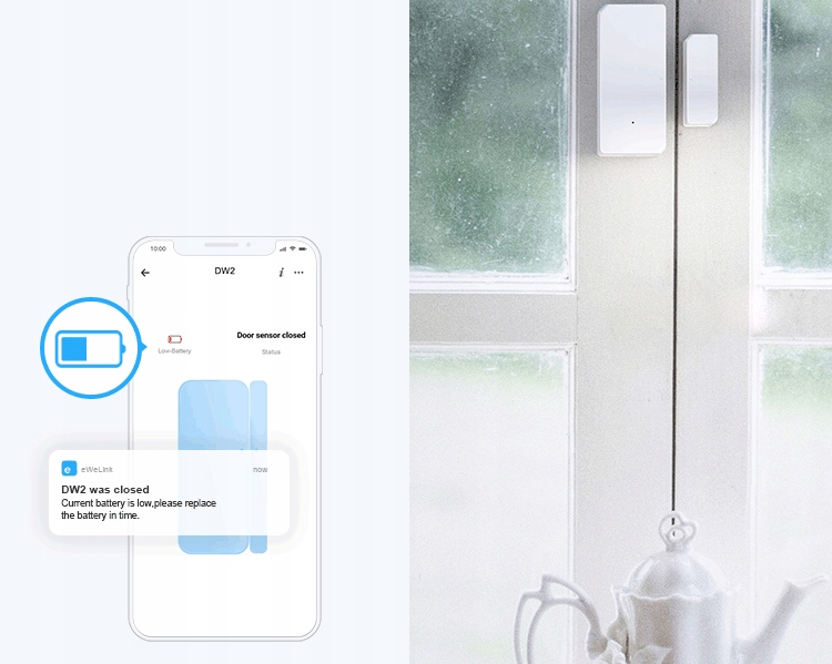 Sonoff DW2 - RF 433MHz - датчик с датчиком, который обеспечивает большую безопасность квартиры от кражи. Датчик отправляет уведомления на телефон каждый раз, когда двери/окна открываются. позаботьтесь о безопасности и наслаждайтесь спокойствием в вашей квартире.