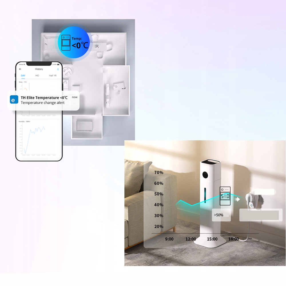 TH отслеживает температуру и влажность в режиме реального времени. При достижении установленного порога или изменении состояния включения/выключения устройства вы получите push-уведомление на свой телефон.