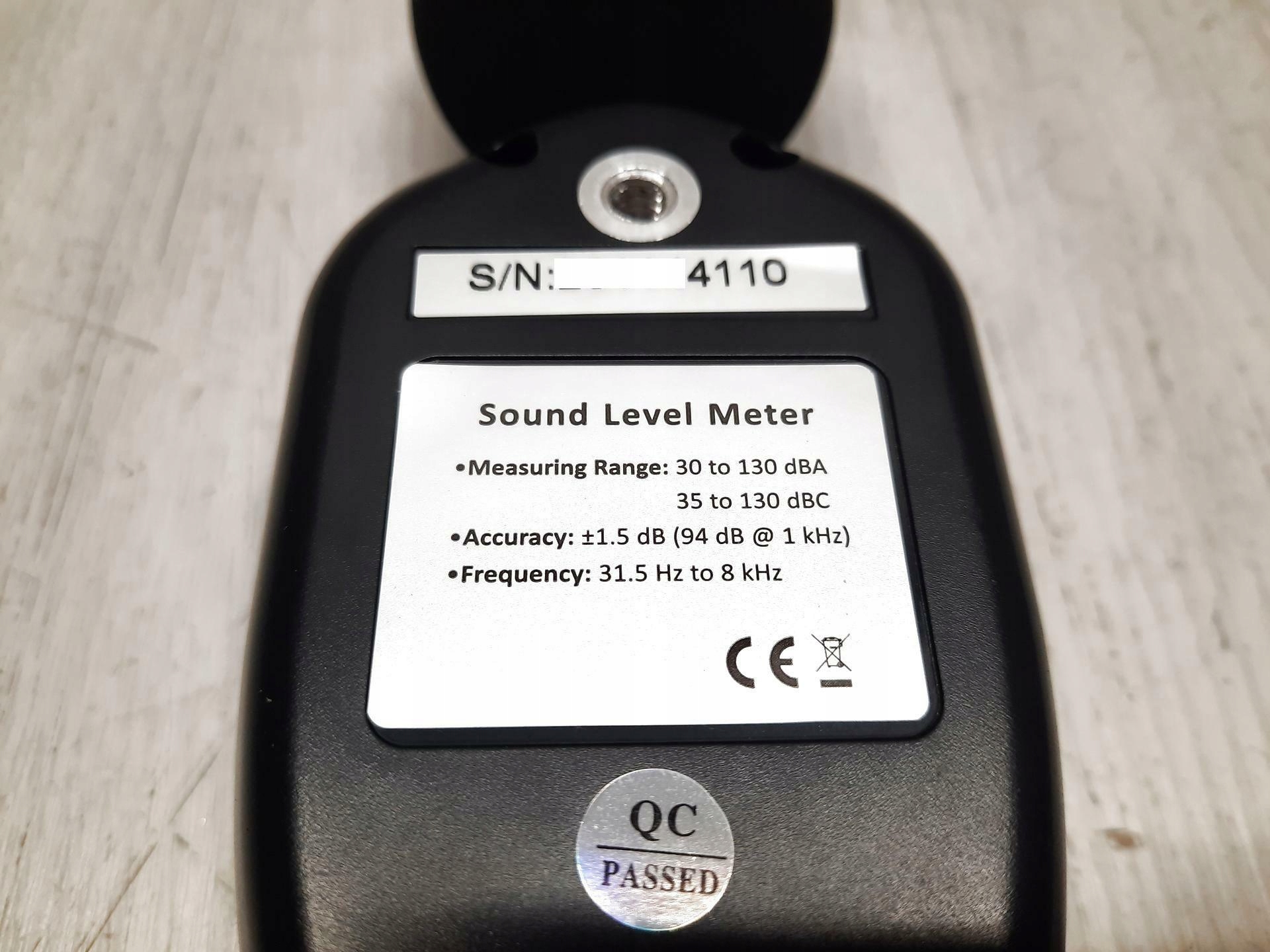 Шумомер может считывать звук в диапазоне 30–130 дБ и записывать данные на компьютер с помощью совместимого программного обеспечения (входит в комплект).