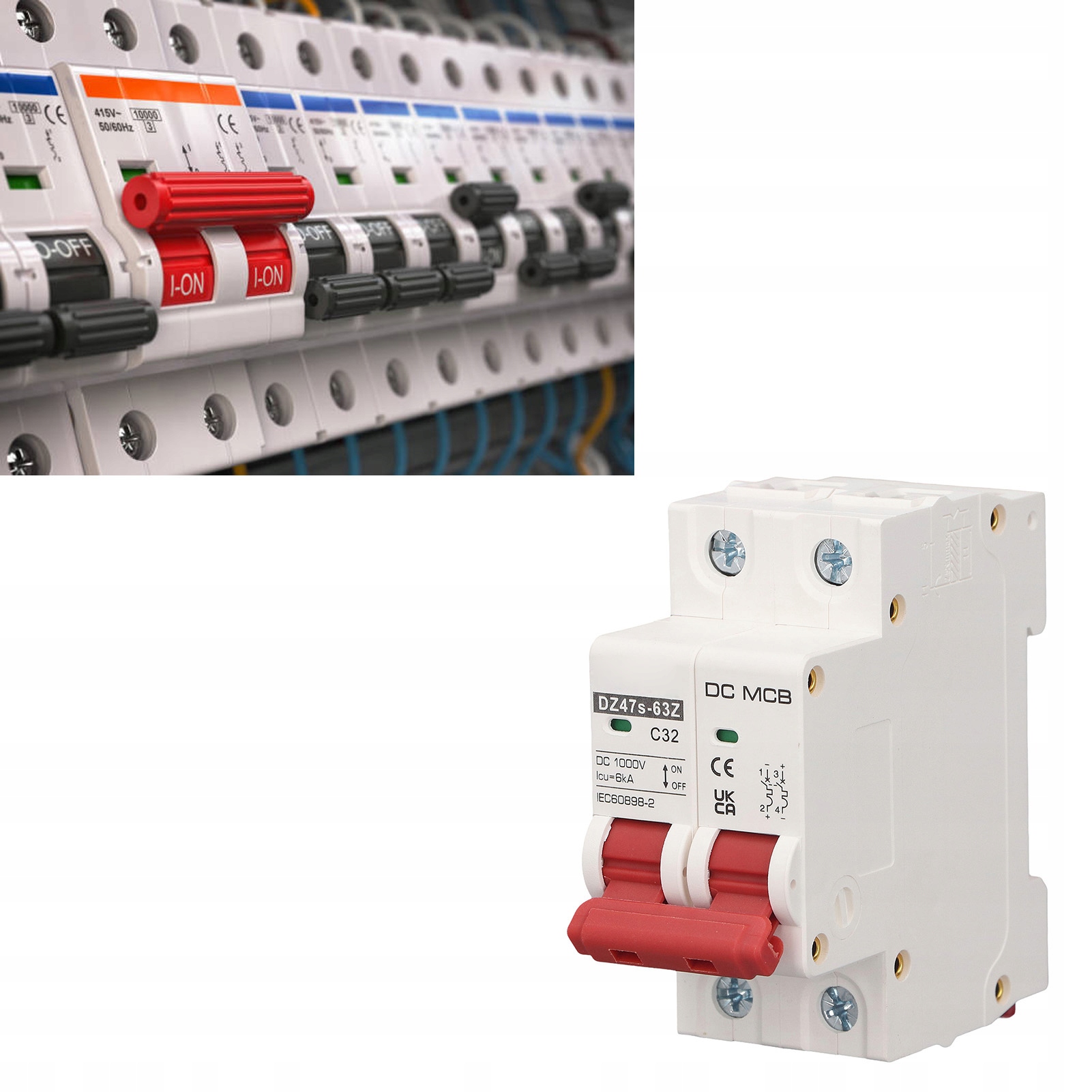 2P Малый автоматический выключатель, 6000 А, отключающая способность, Мини-выключатель солнечной фотоэлектрической системы, 1000 В постоянного тока, 32 А