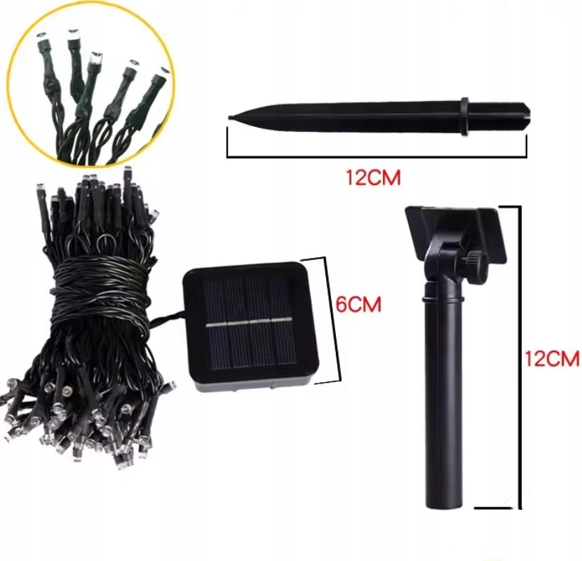 СОНЯЧНА ГІРЛЯНДА СВІТЛО ВОДОНЕПРОХОДНІ САДОВІ ЛАМПИ 100 LED 12M