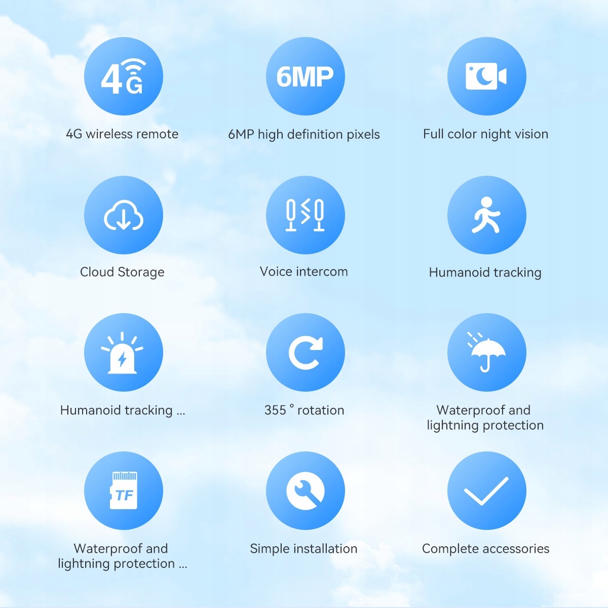 Солнечная камера 6MP HD | 4G соединение сильное близкое красное синие