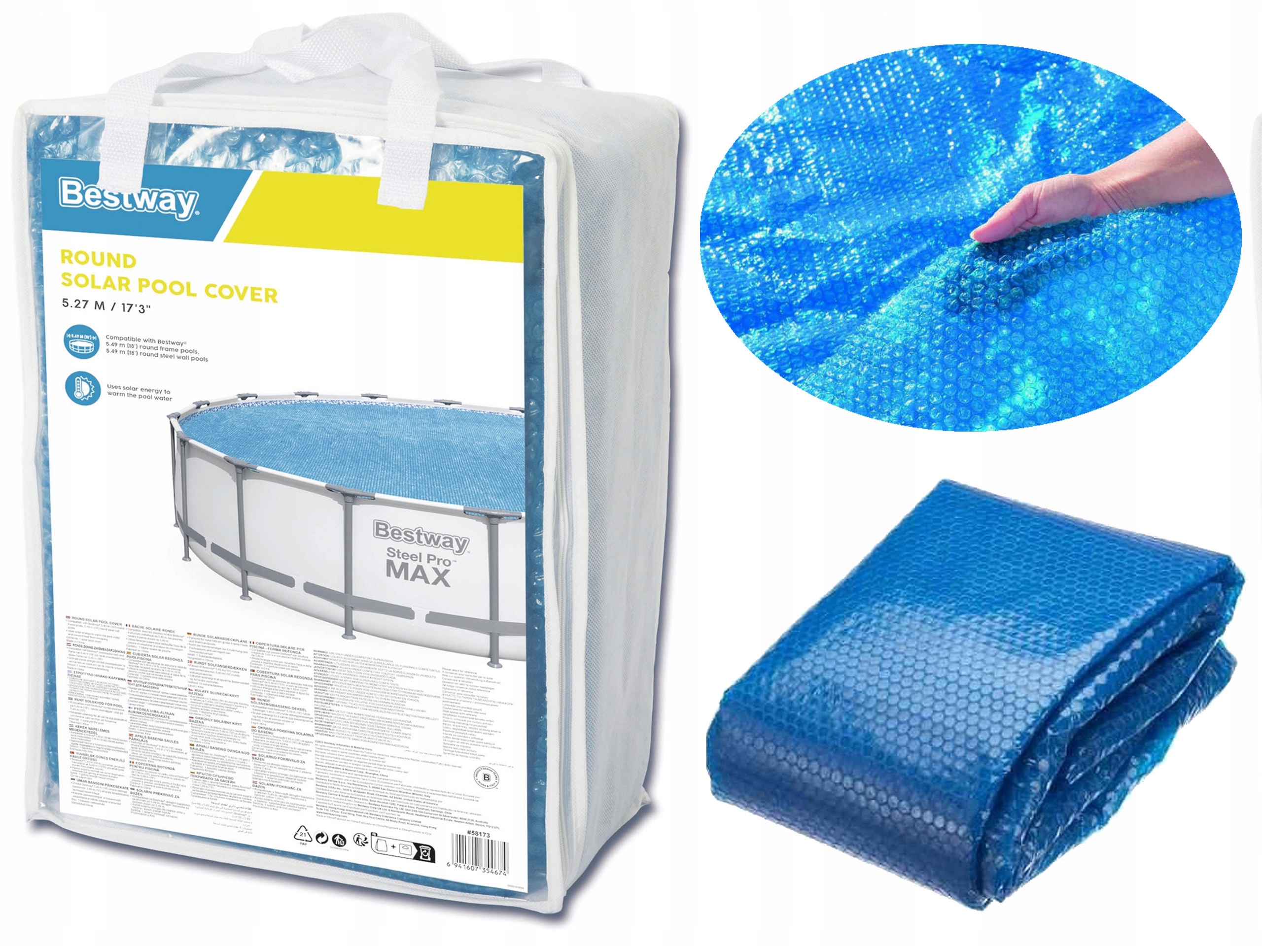 ⭐ Солнечное покрытие BESTWAY 527 см для расширительного бассейна высотой 18 футов НАГРЕВАТЕЛЬНЫЙ КАТ ИЗ ФОЛЬГИ ⭐