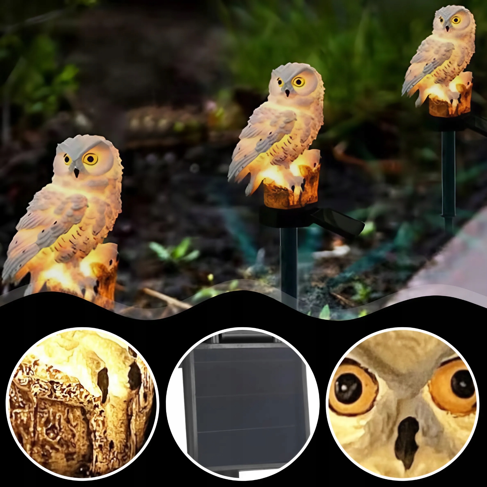 СОНЯЧНА ЛАМПА, СВІТЯЧА СОВА, ЗАБЕЗПЕЧЕННЯ, ВОДОНЕПРОХОДНИЙ САДОВИЙ ДЕКОР, СОНЯЧНА ПАНЕЛЬ