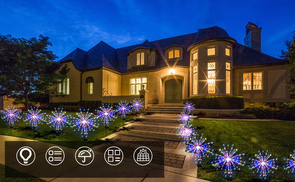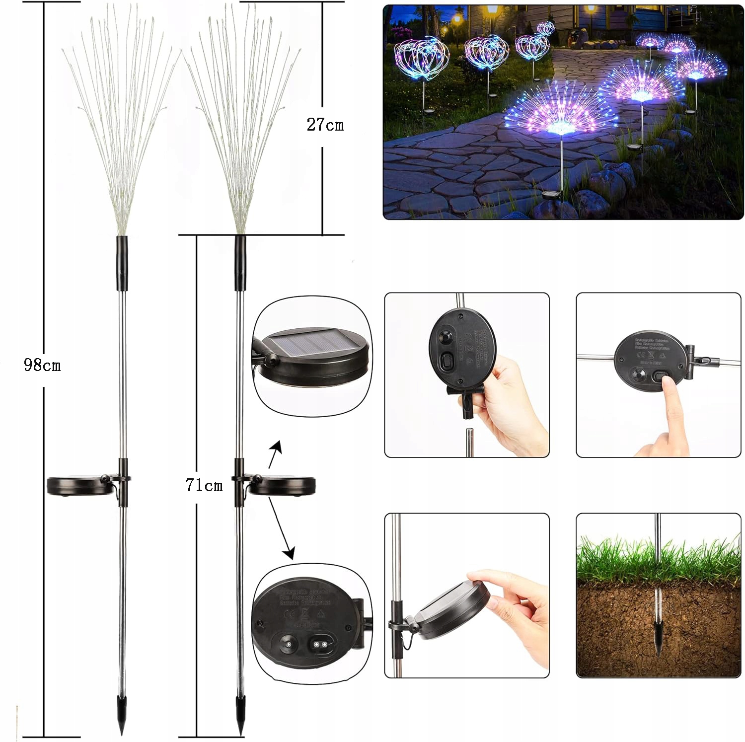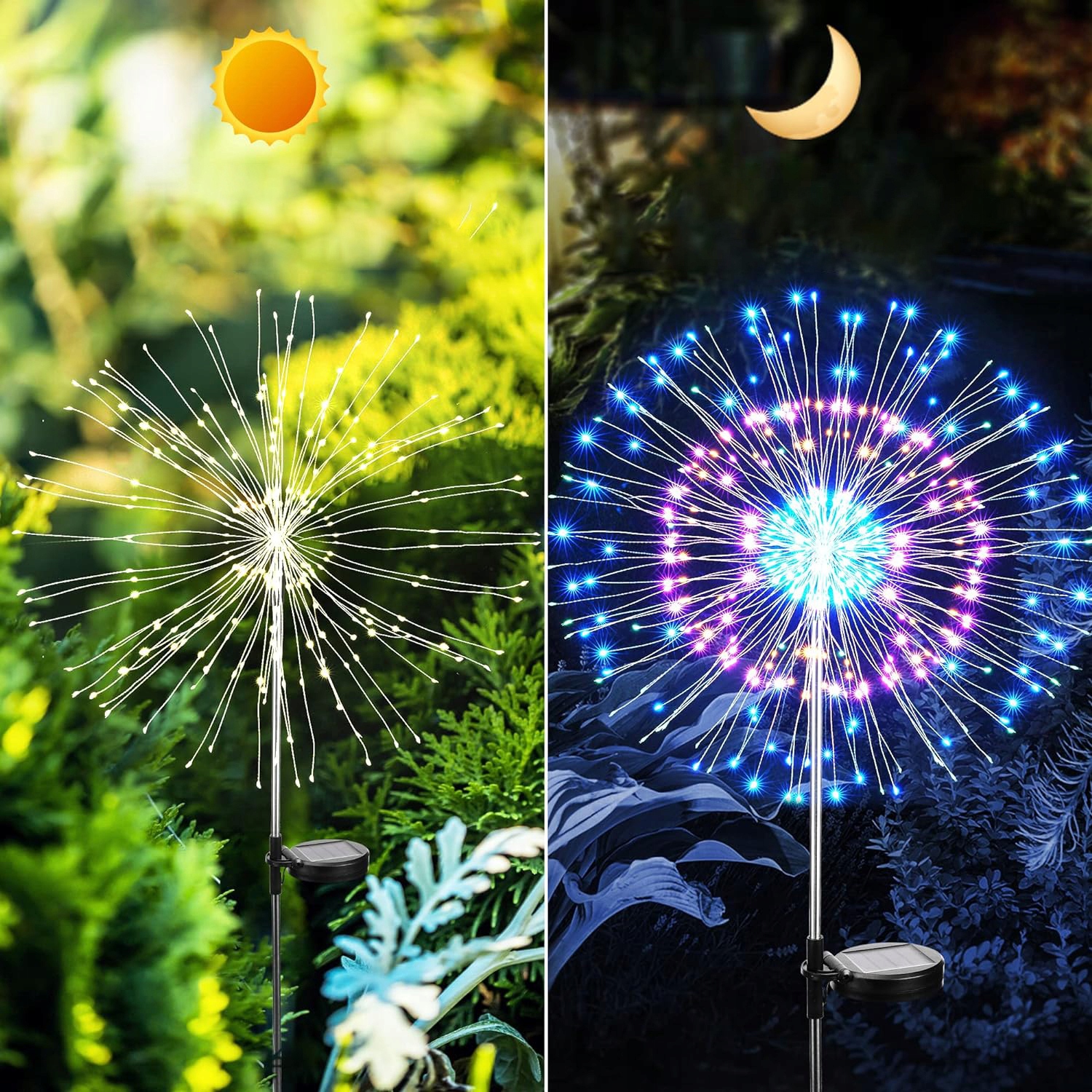 СОНЯЧНА ЛАМПА ФЕЄРВЕРК 2ШТ З 8 РЕЖИМАМИ IP65 ВОДОСТІЙКИЙ ДЛЯ САДУ