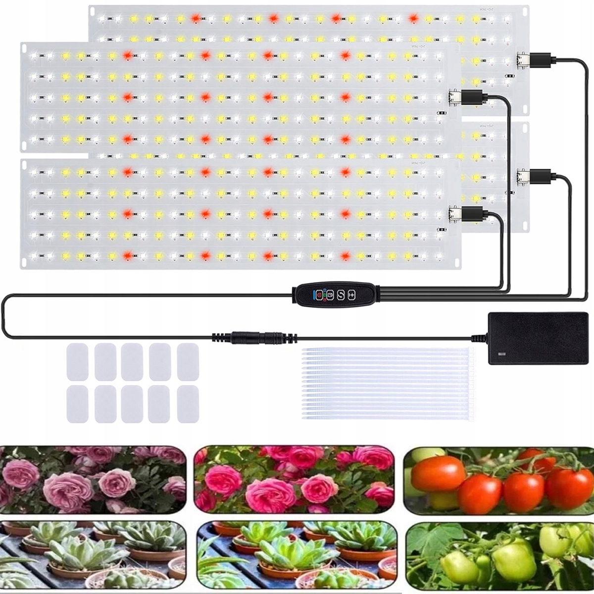 Светодиодный светильник для выращивания растений своими руками состоит из 4 ультратонких панелей. Лампа для растений. Гибкая конструкция для конфигураций различной длины и ширины. Световые панели можно повесить с помощью удобных кабельных стяжек или спрятать под полкой/шкафом с помощью двустороннего клея 3М для экономии места. Подвесные светильники для выращивания растений могут значительно улучшить освещенность и производительность растений.