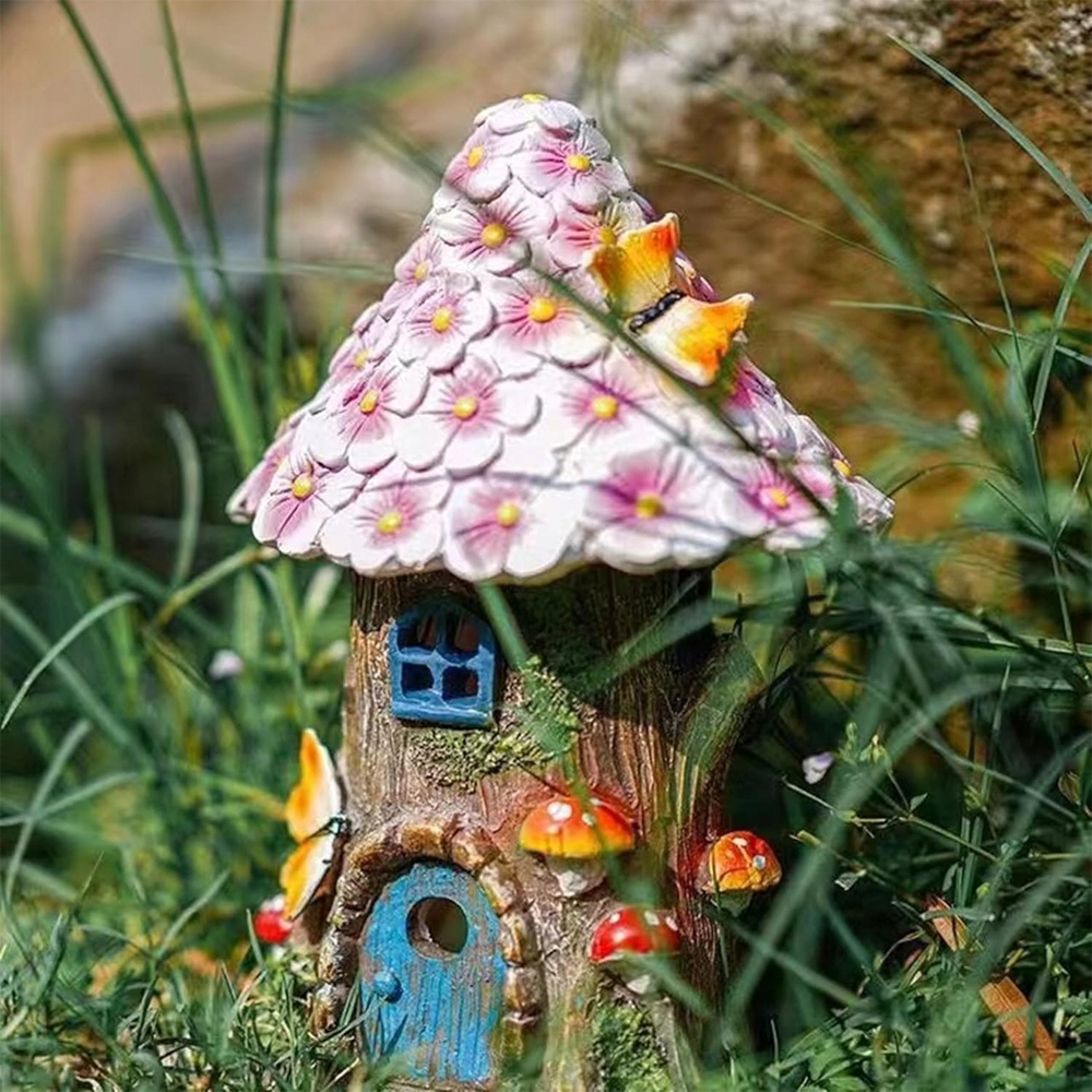 Домик в форме гриба расписан вручную высококачественной водостойкой смолой, что делает его достаточно прочным, чтобы выдерживать дождь и снег, и подходит для длительного использования на улице.