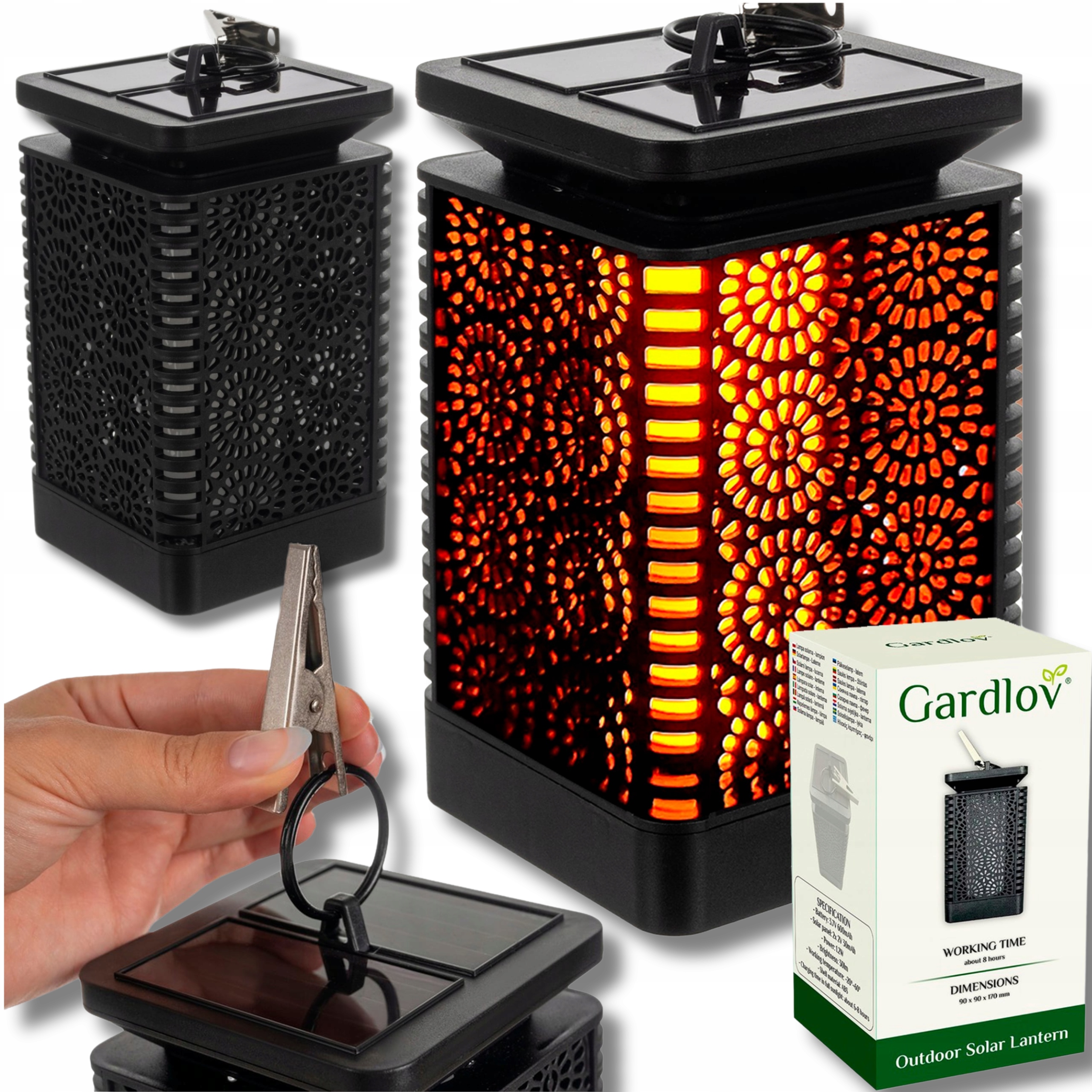- функциональность и легкая сборка - лампа оборудована кругом и зажимом , что позволяет простую установку на различных поверхностях , оба на Стены и в саду. laser -cut pattern не только добавляет элегантность, но и обеспечивает даже дисперсию света в диапазоне 360 градусов . Переключатель лампы расположен рядом с светящейся панелью , которая позволяет быстро включать или выключить устройство. Чтобы получить доступ к панели и переключаться, поверните и потяните верхнюю часть лампы , что облегчает обслуживание и эксплуатацию