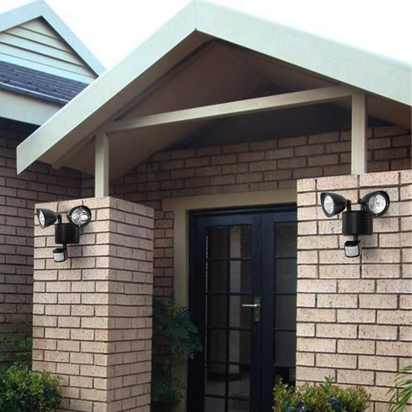 Светильник на солнечной батарее с 2-мя прожекторами, датчиком, 22 светодиода.