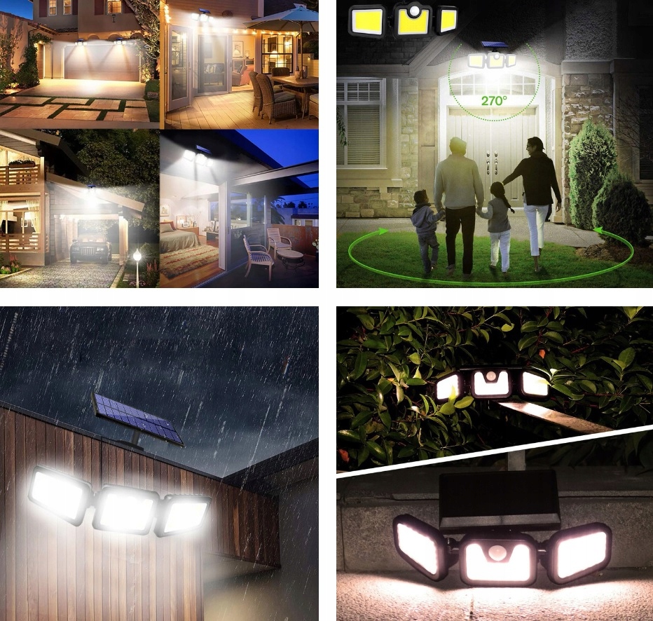 Устройство оснащено до тремя отражателями, которые можно установить в любом положении, чтобы которые тщательно освещают все уголки и закоулки вашей собственности.
