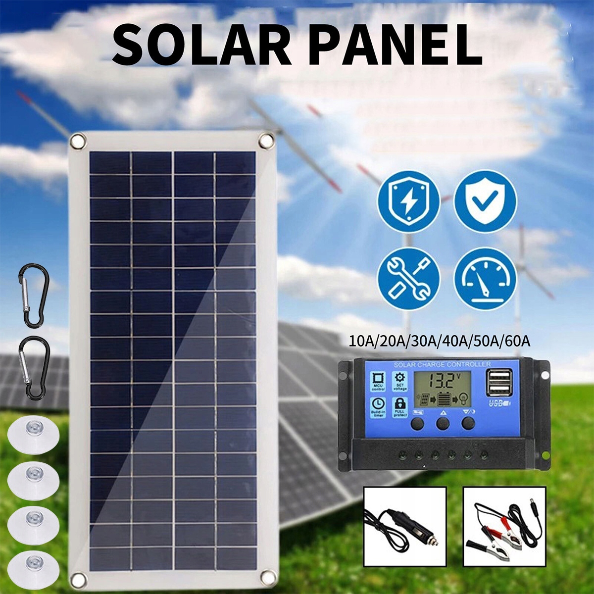 СОНЯЧНА ПАНЕЛЬ 300 ВТ СОНЯЧНА БАТАРЕЯ 12 В РЕГУЛЯТОР КАБЕЛІ 60 A