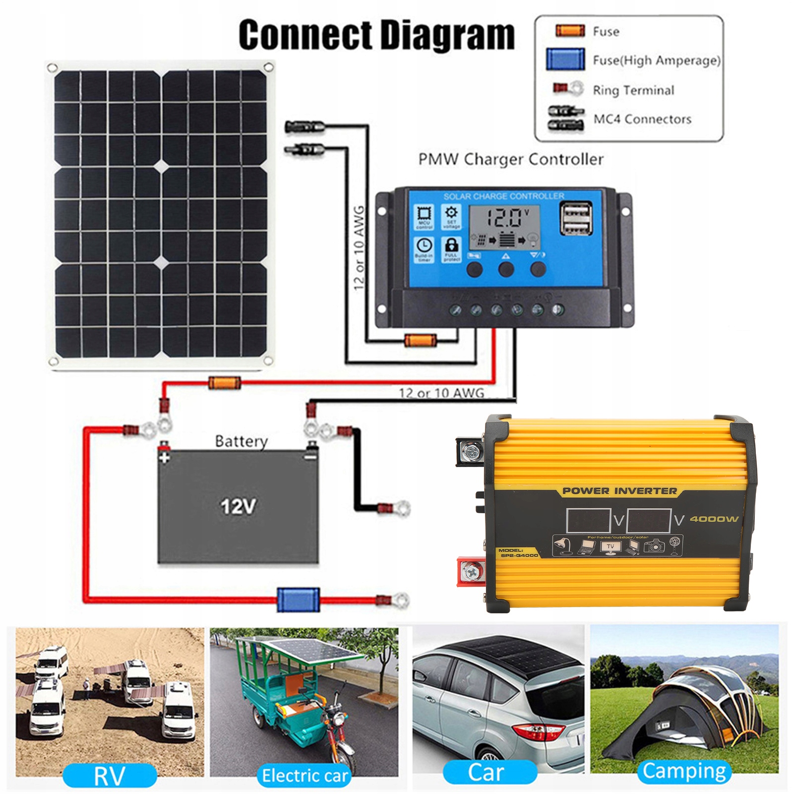 СОЛНЕЧНАЯ ПАНЕЛЬ 300ВТ РЕГУЛЯТОР 30А 12В 24В КОНТРОЛЛЕР ИНВЕРТОРНЫЙ КОМПЛЕКТ