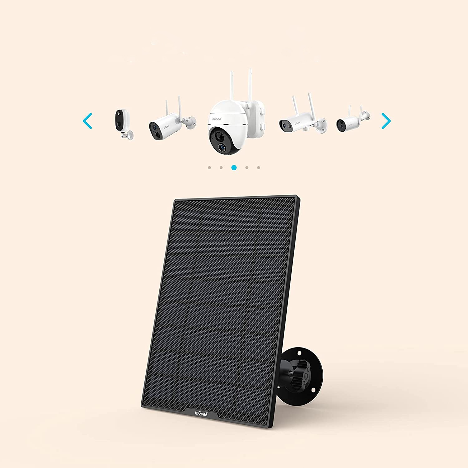 подключает солнечную панель ieGeek к беспроводной камере наблюдения ieGeek для питания аккумулятора от солнца.