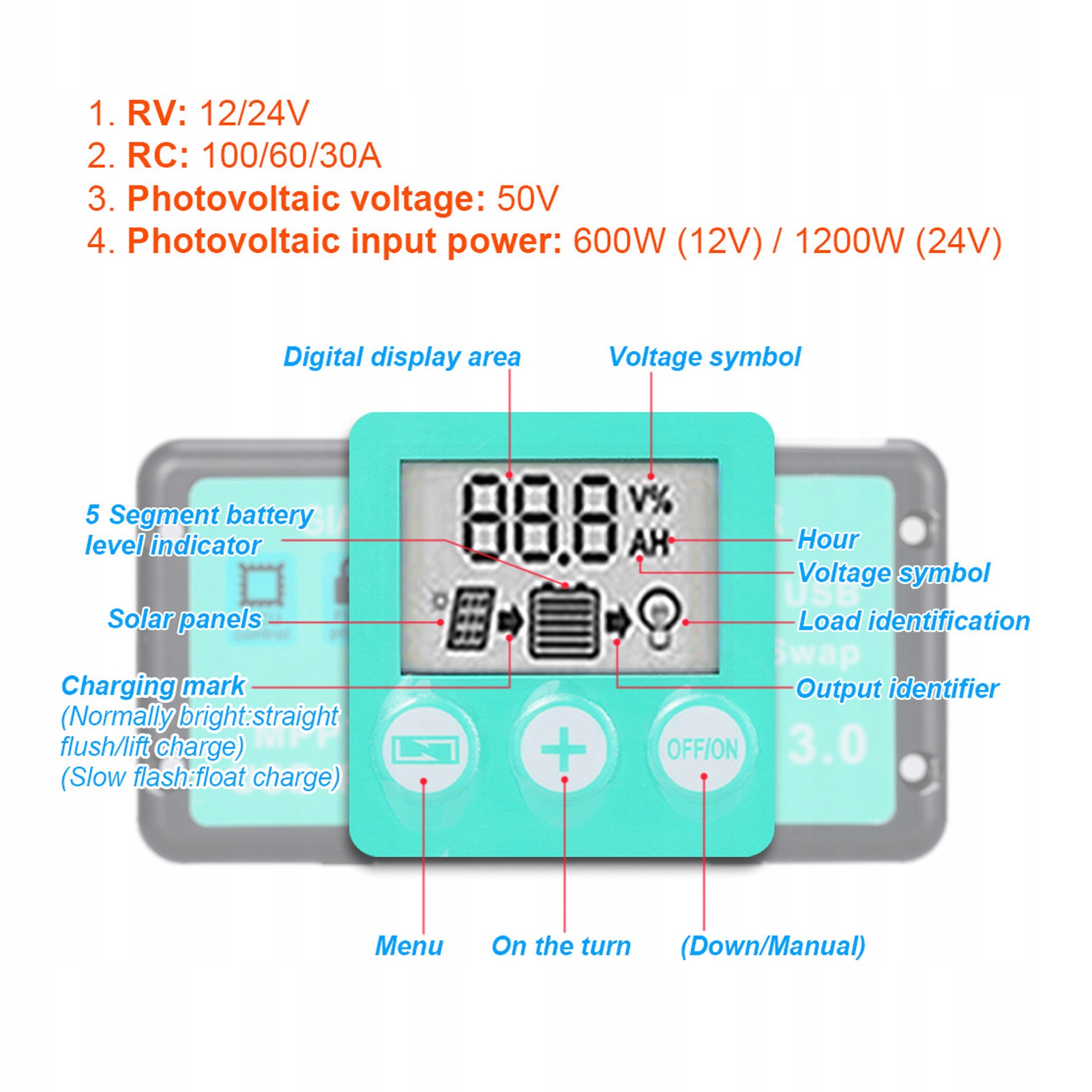 Солнечная панель Solar Solar 60W 60A OBD Широкий контроллер 12V IP68 Вторник